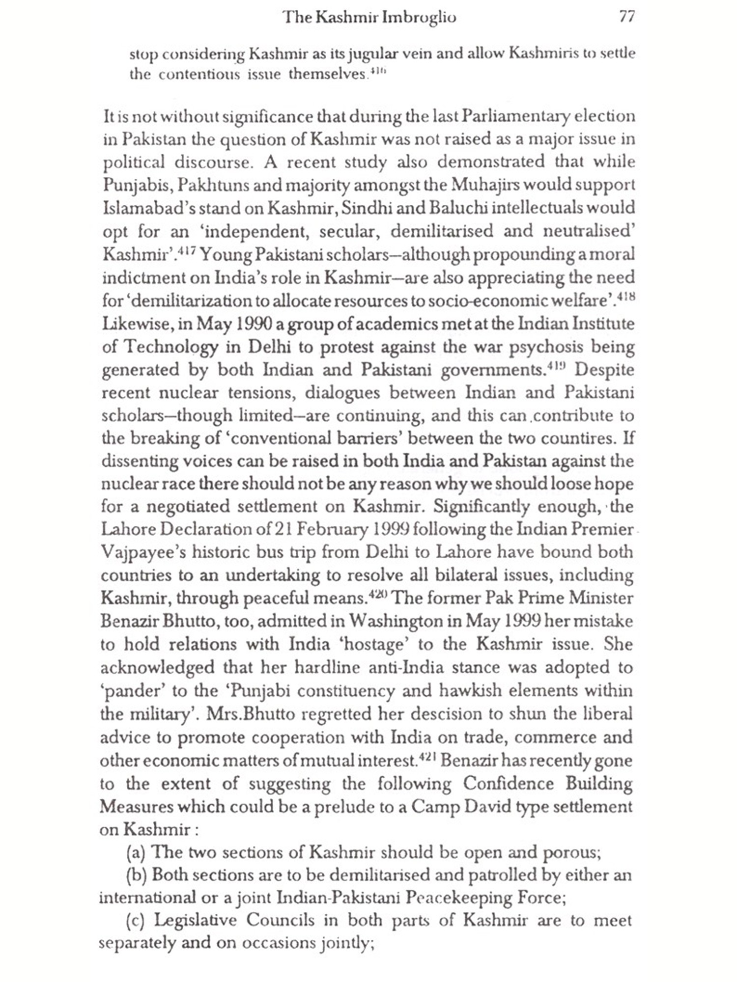 Recent scholarship has highlighted the need to develop a comparative approach for unfolding the common dilemmas in South Asian political processes. In this work an attempt has been made to explore the Kashmir and Sindh questions within the two common subcontinental parametres of nation-building and ethnic assertions. While the book was in press Navnita Chadha-Behera's much awaited State, Identity and Violence: Jammu, Kashmir and Ladakh (Delhi: 2000) was published. It will remain a matter of regret that I was unable to use this work which could have enriched my thesis on the Kashmir question in Indian federalism. If the arguments in my monograph appear unconvincing or suffer from inaccuracies, the responsibility remains mine alone.