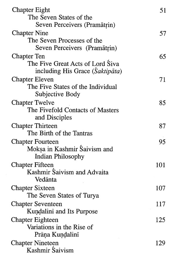 In this book Swami Lakshmanjoo begins this monumental task by revealing and guiding the reader through the labyrinth of mo- nistic Shaivism's mystical geography. Throughout he emphasiz- es the importance of practically realizing the reality of these teachings. The material is neatly divided into nineteen chapters; the presentation is both systematic and cumulative in a style which is clear, concise, and compact.
