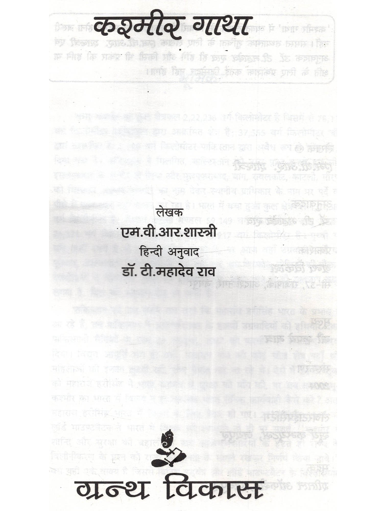 एम.वी.आर.शास्त्री लोक जागरण का अलख जगाने एवं सामाजिक रूपान्तरण की प्रक्रिया को त्वण प्रदान करने वाले प्रख्यात सम्पादक एम.वी.आर.शास्त्री ने अनेक अज्ञात एवं अनछुए विषयों पर प्रामाणिक एवं संग्रहणीय कृतियाँ दी हैं जिनके अध्ययन से लेखक की मौलिक प्रतिभा की ऊर्जा से पाठक ऊष्णता प्राप्त करता है और कई अवसरों भर सामाजिक, सांस्कृतिक तथा राजनीतिक चेतना के स्तर पर पाठक अपने ज्ञान की श्री वृद्धि करने में गौरव का अनुभव करता है। तेलुगु भाषा में पत्रकारिता जगत् को समृद्ध करने वाले ईनाडु में एम.वी.आर. शास्त्री ने तेरह वर्ष तक सम्पादन के क्षेत्र में कई पदों में सफलतापूर्वक कार्य किया फिर घनीभूत अनुभव सम्पदा ले आप "आन्ध्र सभा दैनिक" में उप सम्पादक के पद पर प्रतिष्ठित हुए, चार वर्ष के उपरान्त दिसम्बर 1994 में आप आन्ध्रभूमि दैनिक के सम्पादक बने। नौ वर्ष से अधिक समय तक लोकप्रिय स्तम्भ "उन्नमाटा" अर्थात् "जो बात है" और छह वर्ष से अधिक समय तक "वीक पॉइन्ट" अर्थात् "कमज़ोर कड़ी" निपुणता से लिख रहे हैं। तीन दशक में अपने सैकड़ों सम्पादकीय अग्रलेख तथा ललित निबन्ध लिखे हैं- कश्मीर कथा के अतिरिक्त उन्नमाटा (जो बात है) एवं एदी चरित्रा (इतिहास कहाँ है?) आपकी बहुचर्चित कृतियाँ हैं।