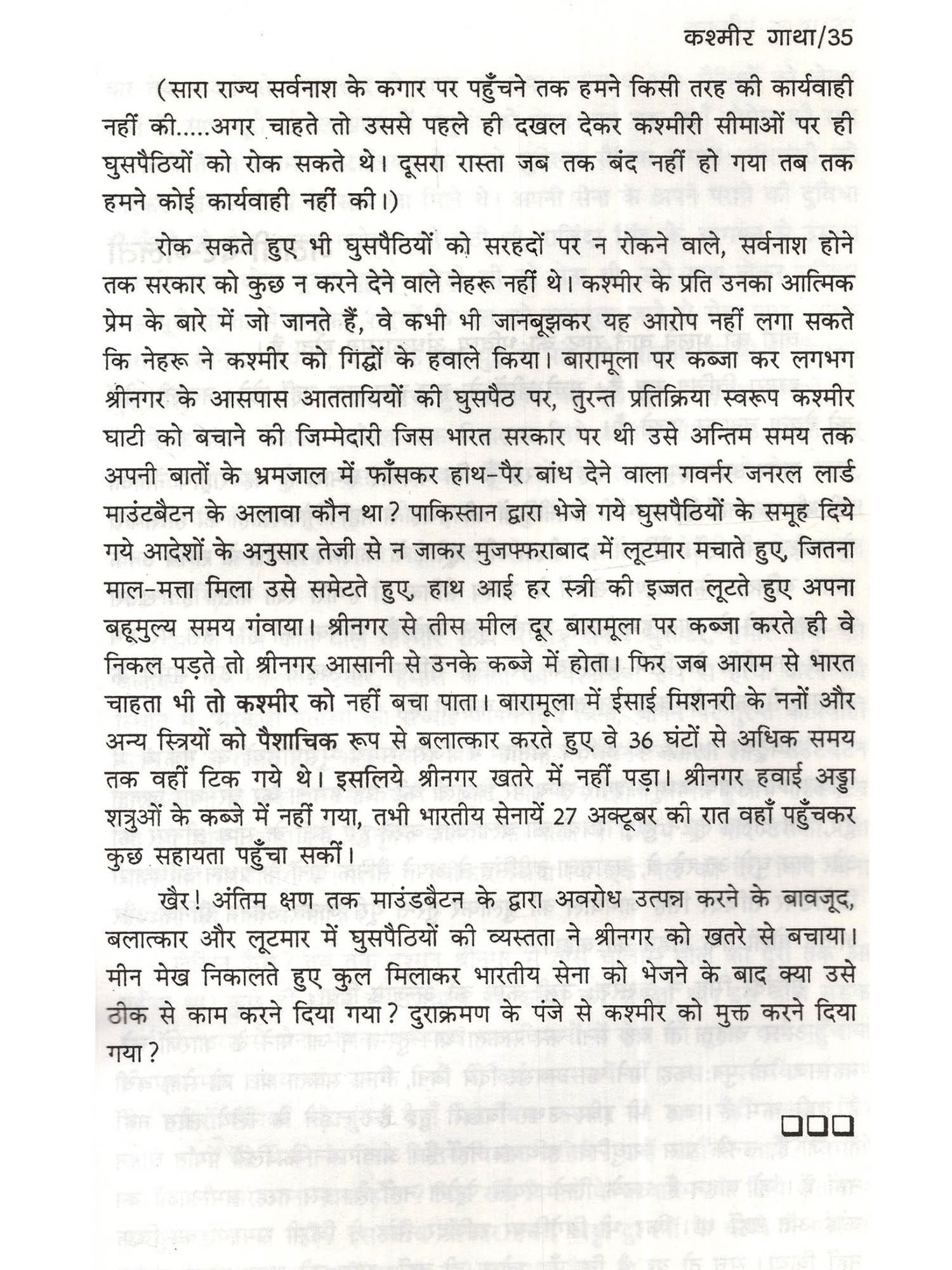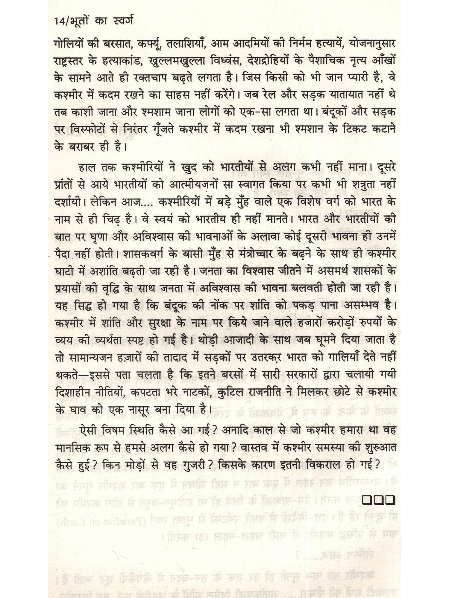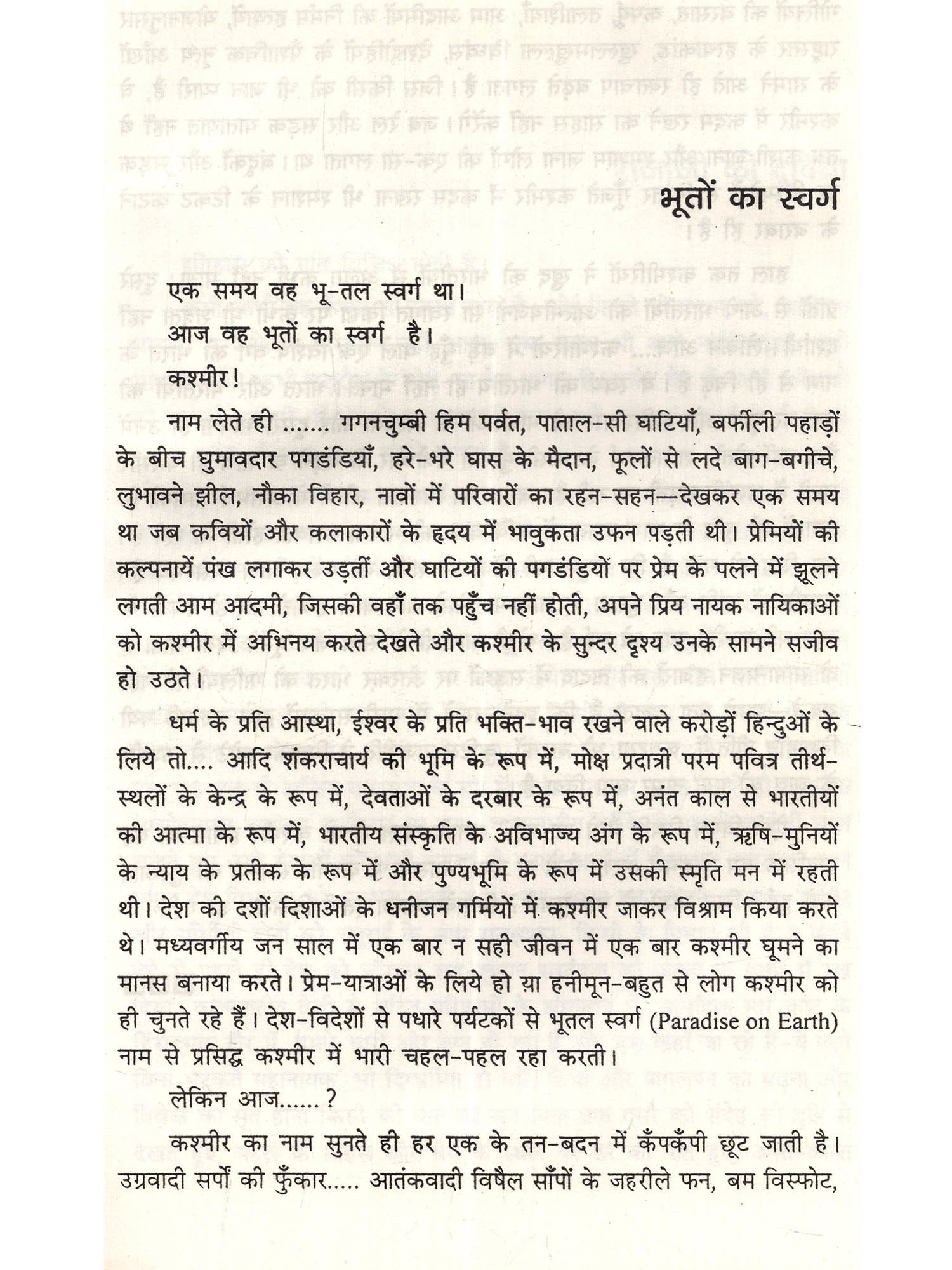 कश्मीर - 'पृथ्वी पर स्वर्ग', की एक विलक्षण और अद्भुत विशेषता है, उसे सारे देश ने प्यार दिया। कश्मीर के प्रति पं. जवाहरलाल नेहरू का असीमत प्रेम था। नेहरू के बाद यदि किसी में कश्मीर प्रेम दिखा तो अटलबिहारी वाजपेयी में। कश्मीर के प्रति अटूट प्रेम है, हम सबका पर समस्या और अधिक जटिल हो गयी। उग्र आतंकवादियों में जिस आत्मविश्वास की कमी आ रही थी वाजपेयी शासन में उसे पनपने का मौका मिला, बसों, रेलगाड़ियों में उन्होंने बम विस्फोट किया, दहशत फैला निरपराध लोगों को मौत के घाट उतारने का साहस प्रगति कर गया। सीधे सैनिक छावनियों पर, खुले आम आक्रमण करने में भी वे सफल हुए। और तो और लाल किले एवं सर्वप्रभुत्व सम्पन्न सार्वभौमिकता की प्रतीक भारतीय संसद पर भी हमला करने पर वे आमादा हो गए। उन्हें कुचलने की बजाय उग्रवादियों के नेताओं से बातचीत का सिलसिला भी चला। नागरिक उड़ान भर रहे वायुयान को आँखों के सामने ही अपहृत कर ले जाते देखकर देशद्रोहियों और विदेशी अभिकर्ताओं से अनुनय-विनय, कर उनकी माँग के अनुसार क़ैदियों को छोड़कर अपने अपहृतों को सुरक्षित छुड़वाने का कृत्य भी हुआ। कारगिल पर आक्रमण एक व्यूह रचना का अंग था- सैनिकों का वहाँ पहुँचना, मुजाहिदीनों का चयन कर उन्हें विशेष प्रशिक्षण, नियंत्रण रेखा पर हेलीपेड का बनना, बंकरों का निर्माण होना, राशन, हथियार, गोला बारूद का भण्डारण तथा मश्को घाटी, द्रास, कक्सार, बतालिक सेक्टर में पाकिस्तानी सैनिकों से सम्पर्क हेतु केबुल संचार नेटवर्क की व्यवस्था के बाद ही हुआ। उपर्युक्त कार्यवाहियों का हमें पता ही नहीं चला, फिर एक पक्षीय युद्धविराम की घोषणा और पाकिस्तानी सैनिकों को सुरक्षित वापस लौटने का अवसर दिया जाना सम्भवतः अमरीकी दबाव में ही हुआ। अटलबिहारी वाजपेयी नोबल शान्ति पुरस्कार की आकांक्षा में मुशर्रफ से आगरा शिखर सम्मेलन, लाहौर बस यात्रा कर पाकिस्तानी प्रधानमंत्री नवाज शरीफ़ को गले लगाकर शान्ति और सद्भाव की बहाली के लिए पाकिस्तान पर विश्वास करते रहे। ज़रूरत है 22.2.1994 को संसद द्वारा पारित प्रस्ताव को क्रियान्वित करने की। भारतीय संविधान के अनुच्छेद 370 को समाप्त कर वहाँ के निवासियों को भी राष्ट्रीय जीवन की मुख्यधारा में मिला कर गौरवान्वित होने का अवसर दिया जाए ताकि भारतीय नागरिक समस्त भारत की तरह जम्मू-कश्मीर में निश्चिन्त होकर निवास कर सकें, जमीन, जायदाद खरीद सकें, व्यापार, कर सकें, उद्योग चला सकें, सरकारी नौकरी प्राप्त कर सकें तभी वस्तुतः कश्मीर भारत का अविभाज्य अंग सिद्ध हो सकेगा।