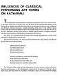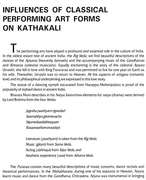 But what is exciting is his mastery over both performance and teaching methodology. He is a consummate artist who enquires constantly. He understands his form - the past that was and the present and also throws his mind to the future. He experiments boldly in his style, whatever he does, he does with extreme care and after due contemplation. Balakrishnan's own prowess over this extremely difficult art of abhinaya allows him to bare to the reader the process of physical, mental and emotional preparation that are required to play-act a great theme. He even speaks with authority on the aspect of music for the dance. Such a person is supremely well placed to write about this difficult dance art. He has done so and this is a welcome gift to the world of dance. What he writes about is what he loves most. And that is the dance form - Kathakali. All its moves and all its graces - with deep knowledge and with abiding love."