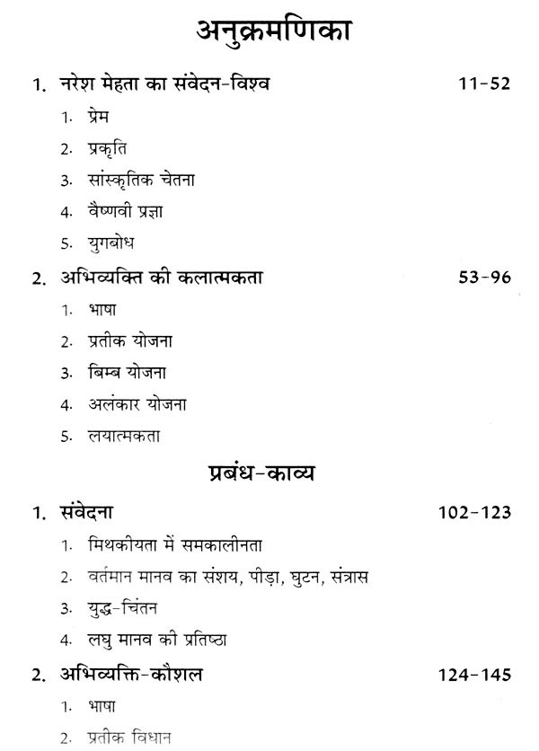 आरंभ में प्रगीतात्मक रचनाएँ देने वाले नरेश मेहता की दृष्टि आगे चलकर एक प्रौढ़ कवि की भाँति हमारे मिथकों की ओर उन्मुख होती है। मिथकों का सहारा लेकर कवि ने जिन प्रबंध काव्यों की रचना की है, उनमें हम अपने समय के ज्वलंत प्रश्नों को पाते हैं। हर प्रबंध रचना में शिल्पगत नवीन प्रयोग उनकी प्रबंध सर्जना को विशिष्टता प्रदान करता है।