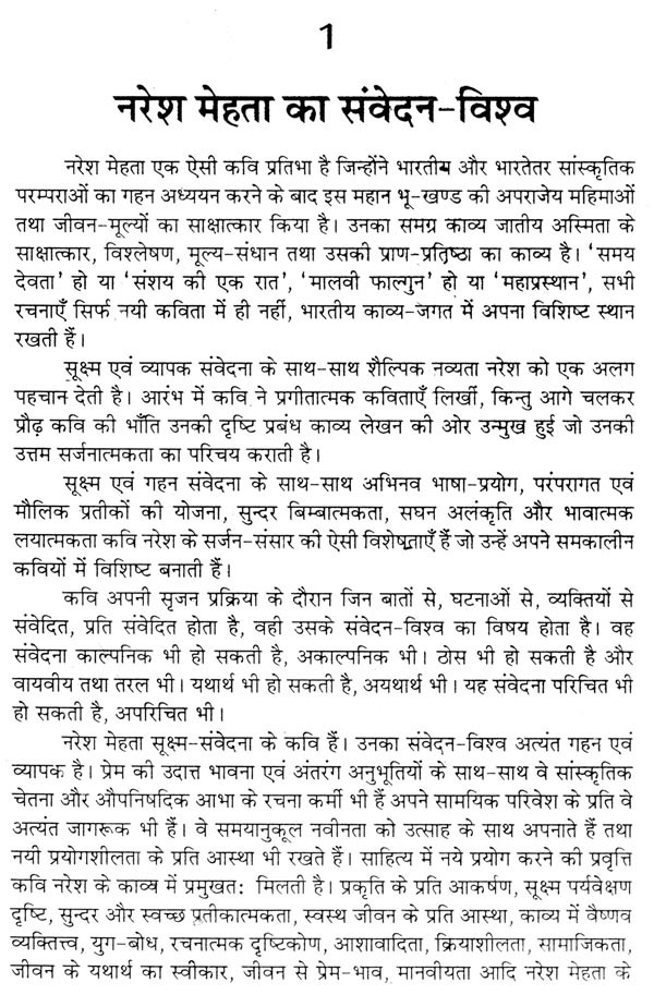 नरेश मेहता की ऐसी समृद्ध साहित्य सृष्टि में से उनके कवि रूप को केन्द्र में रखकर लिखे गये, हेमचंद्राचार्य उत्तर गुजरात युनिवर्सिटी की पी-एच.डी. की उपाधि के लिए स्वीकृत शोध-प्रबंध 'कवि नरेश मेहता संवेदना और अभिव्यक्ति' का पुस्तक रूप में प्रकाशन करते हुए मैं हर्ष का अनुभव कर रहा हूँ।