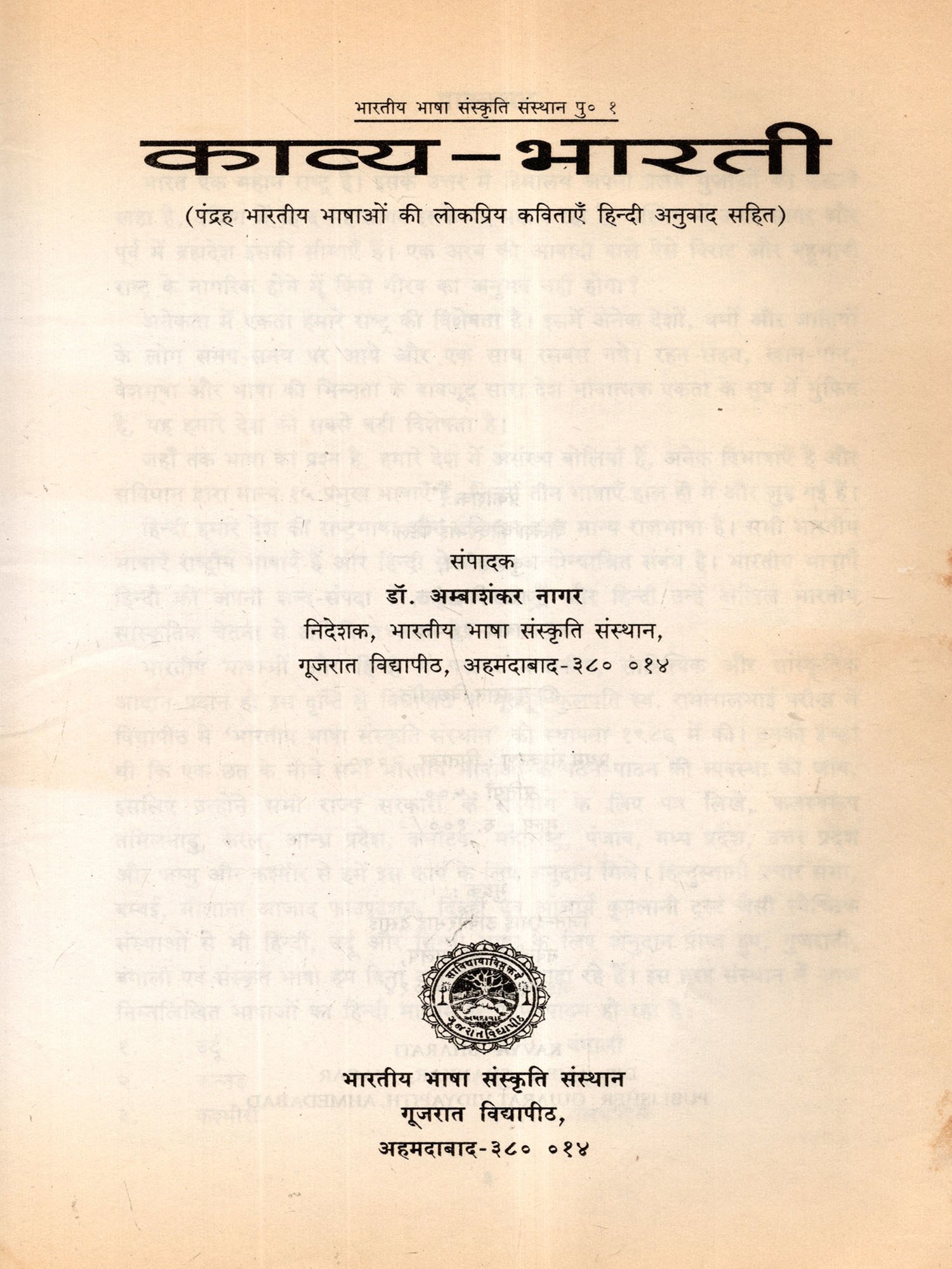 काव्य-भारती: Kavya-Bharati (Popular Poems from Fifteen Indian Languages, with Hindi Translations) An Old and Rare Book