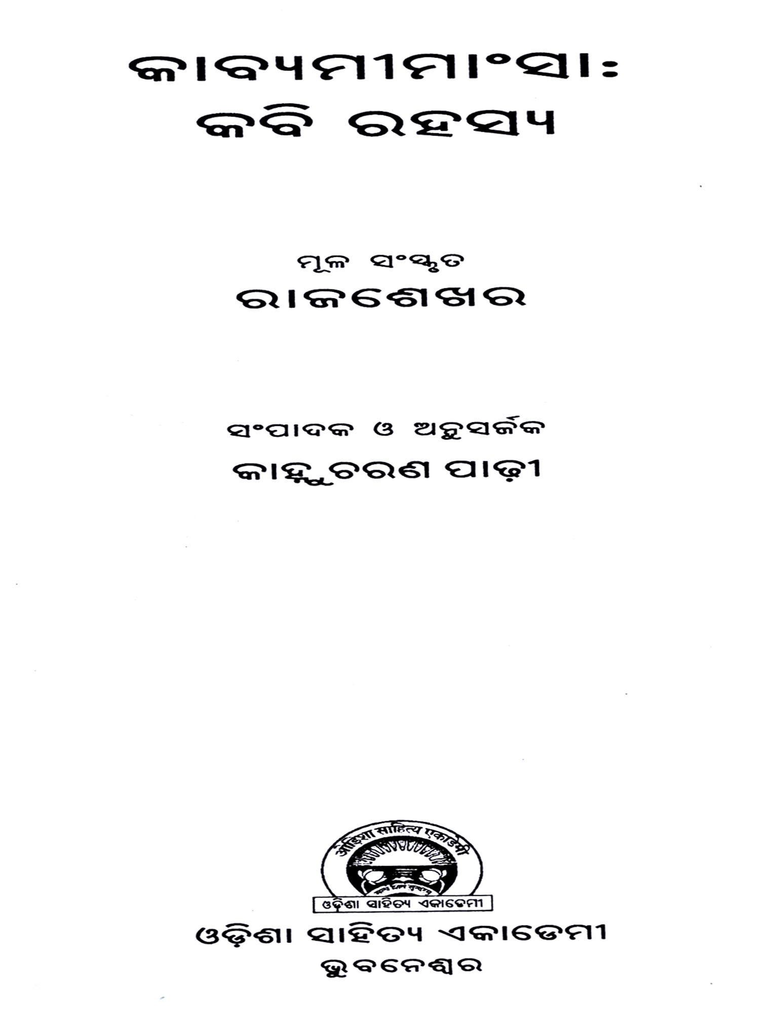A Descriptive Catalogue of Oriya Manuscripts Oriya Kavya (Kha-Cha) Volume- VIII (An Old and Rare Book)