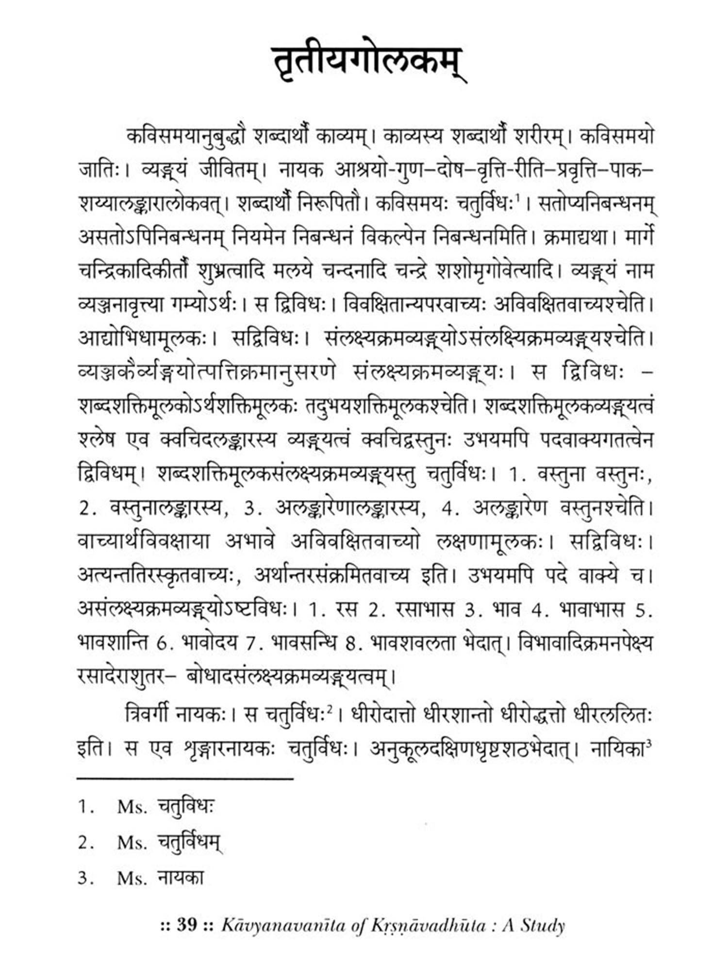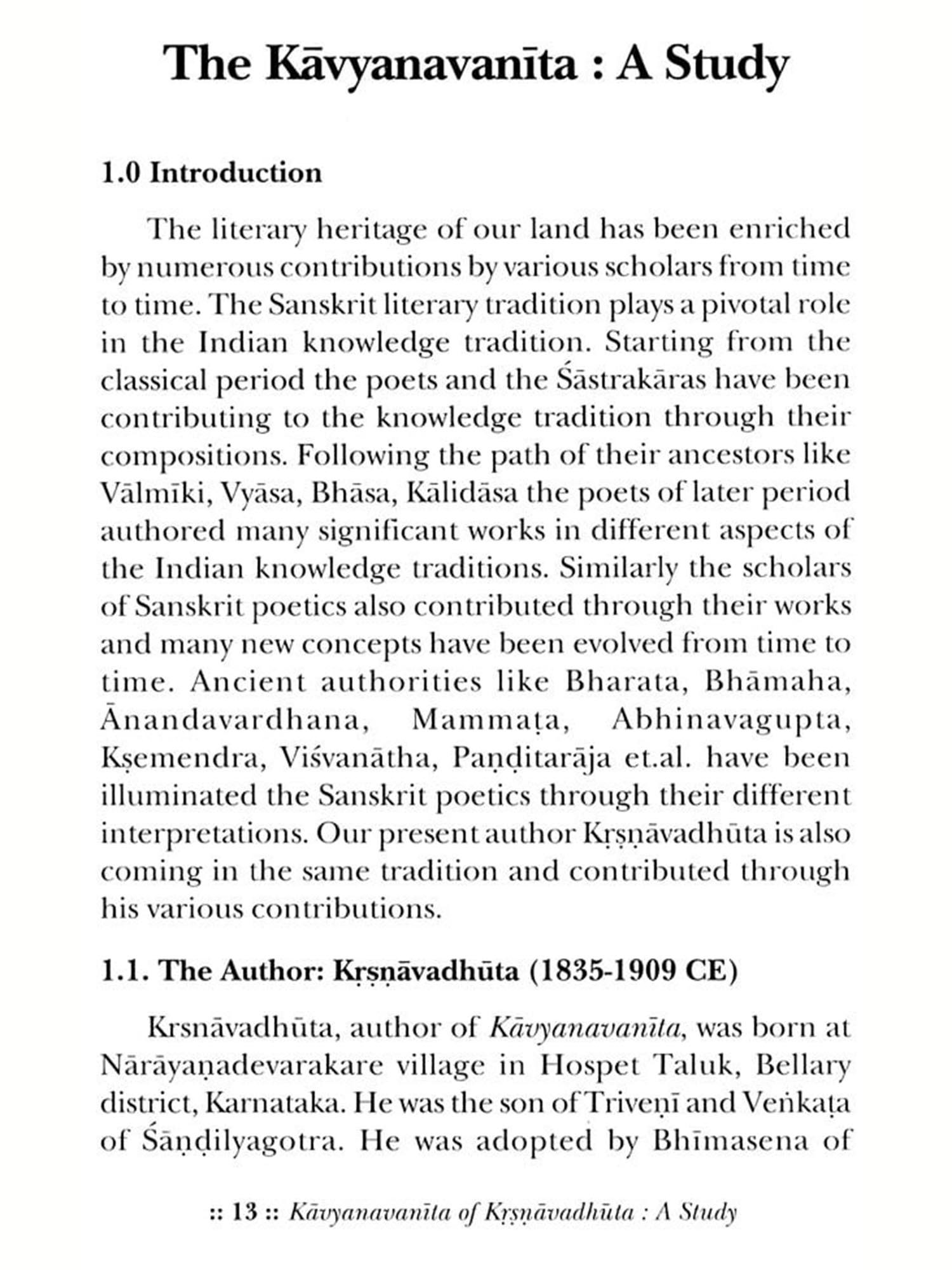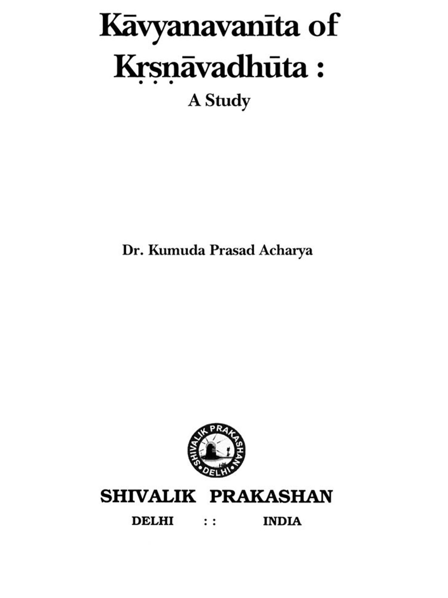 Certainly the present study will be beneficial for the scholars interested in Sanskrit poetics. They will find a holistic approach made by Krsnavadhuta in a newer form. I congratulate Dr. Acharya for his enthusiasm and wish that the present book will find a place in the scholarly world.