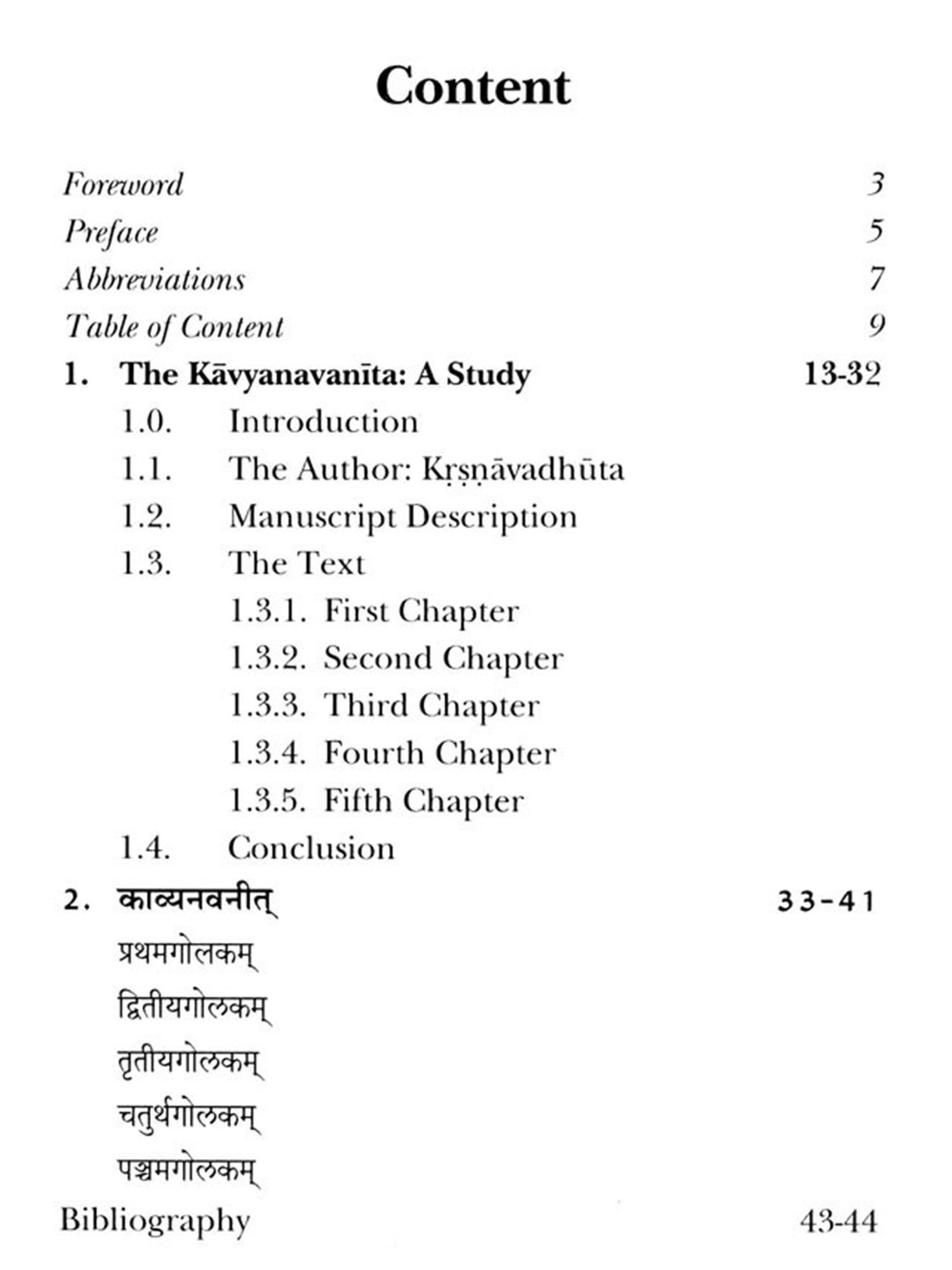 The Indian cultural diaspora has been enriched by the vast literary treasure. Starting from the Vedic period, the Indian mind is always engaged in research and innovation of new ideas. The authors and poets have composed a number of works/texts in different languages and the flow still continues. In this connection the Sanskrit language plays an important role in development of the Bharatiya cultural and literary heritage. In the tradition of sastra, the kavyasastra or the poetics which deals with various aspects of literary compositions also finds a place in the world of knowledge tradition. The Kavyanavanita is a work on Sanskrit poetics and the author is Krsnavadhuta. The text incorporates various concepts viz. riti, vrtti, guna, alankara, kavya and its division with examples. The present study is on the text Kavyanavanita and an attempt has been made to propagate the ideas nourished by Krsnavadhuta. The study also highlights the similar views of other prominent thinkers on some of the concepts. If the book will satisfy the aspirations of the scholars, then it will be a great satisfaction.