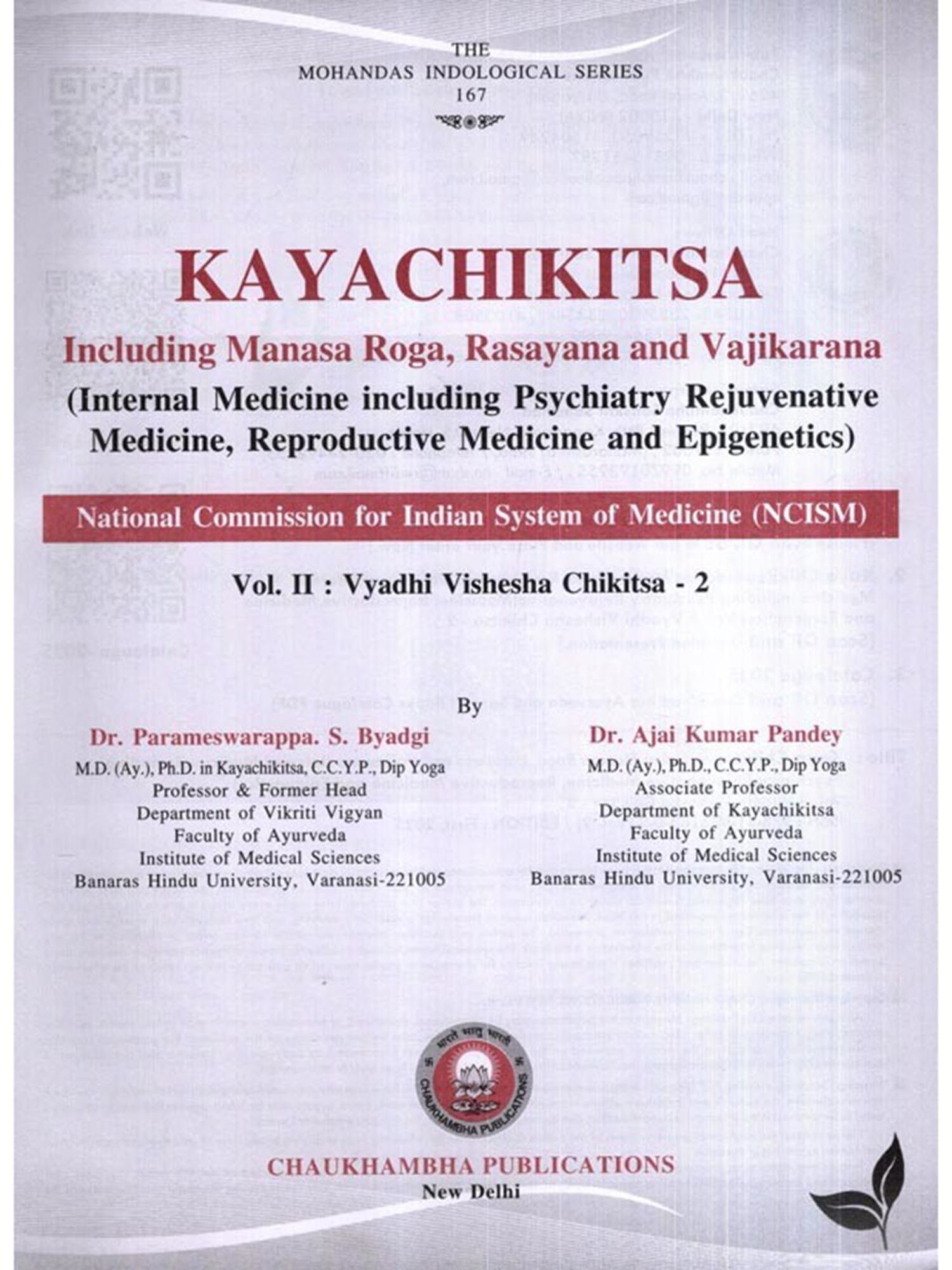 Very recently, the syllabus of Kayachikitsa (Internal Medicine) has been revised by the National Commission for Indian System of Medicine (NCISM), New Delhi. At this juncture, there is a strong felt need among the academic fraternity to develop a textbook on Kayachikitsa that addresses the evolving needs of students. This book has been written with a student-centric approach, focusing on the classical aspects of disease management while also incorporating modern perspectives on various diseases to ensure its relevance in contemporary clinical practice. This textbook has been meticulously designed to serve as a comprehensive guide for undergraduate and postgraduate students, Ayurveda practitioners, and scholars. It integrates classical concepts drawn from the Charaka Samhita, Ashtanga Hridaya, and other authoritative Ayurvedic texts with contemporary clinical interpretations, evidence-based approaches etc.