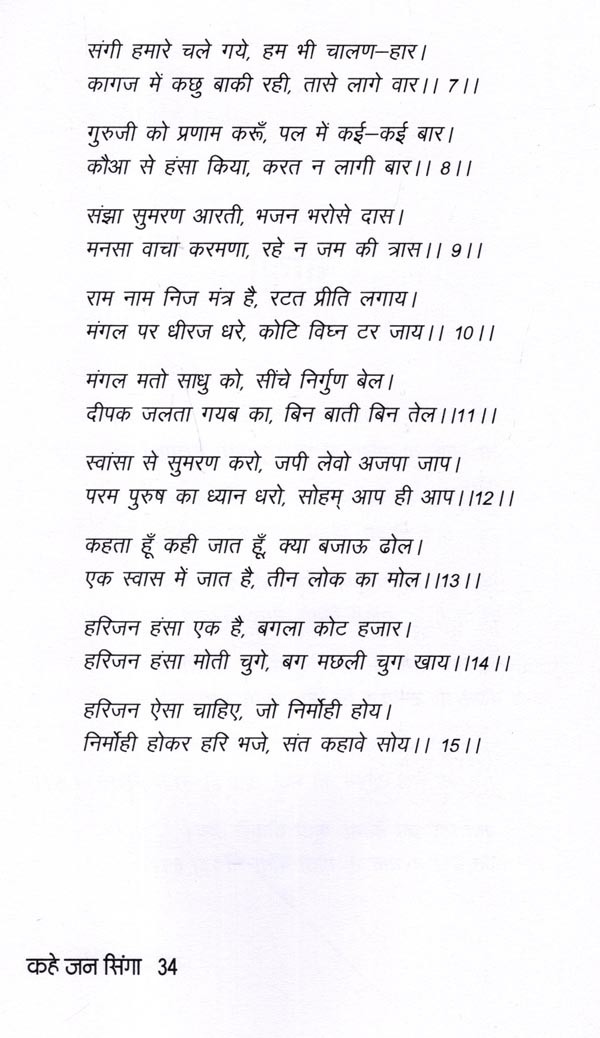 कहे जन सिंगा- निमाड़ी सन्त सिंगाजी के लोक पदों का चयन: Khae Jan Singha- Selection of Folk Verses of Nimadi Saint Singhaji