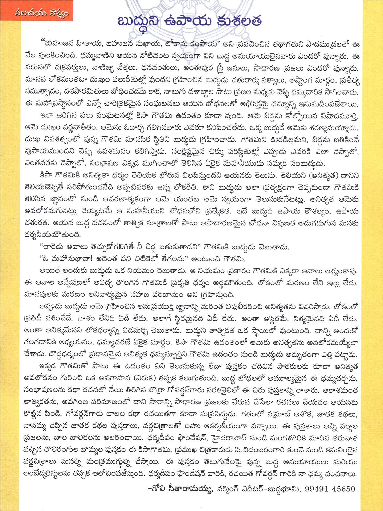 కిసా గౌతమి- Kisa Gautami: Dukkha Vimuktimarganiki… (Childrens Book in Telugu)