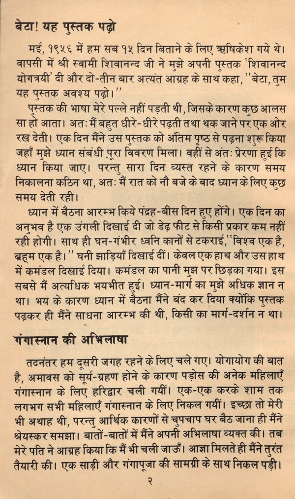 इस पुस्तक में जो भी अनुभव लिखे गए हैं वे मेरे निजी अनुभव हैं। १९५६ से लेकर १९६८ तक के ध्यान-साधना काल में जो अनुभव हुए, वे इस पुस्तक में प्रस्तुत किए गए हैं। पहले ये अनुभव 'संतकृपा' मासिक पत्र में एक साल तक क्रमशः छप कर आते रहे थे। बाद में 'संतकृपा' के माननीय संपादक श्री ना०वि० काकतकर और उक्त मासिक के सब कार्यकारी सदस्यों के सौजन्य से यह लेख माला मराठी में पुस्तक-रूप में छपी जिससे अनेक मुमुक्षु साधकों को लाभ हुआ। मेरी सब साधना दिल्ली में हुई, लेकिन जब पुस्तक लिखी गई तब हम अपने गांव मिरज (महाराष्ट्र) में आ गए थे। पुस्तक लिखने का हेतु यह रहा कि जो मैंने पाया है उसे सब पा लें। मुझे जो अपूर्व आनंद मिला वह सब को मिले। इस उद्देश्य से जैसे ही लेख-माला शुरू की, मासिक में हर महीने छपं कर आने लगी। लोग पढ़कर बड़े ही प्रभावित हो उठे। मैं चाहती थी कि लोगों का भला भी हो और हम किसी के सामने न आएँ, लेकिन गुरुदेव को यह मंजूर नहीं था। लोग लेख पढ़कर संपादकजी को पत्र लिखते, मेरा पता पूछते, पत्र लिखते, आकर मिल लेते और साधना शुरू करते। रोजाना दस-बारह पत्र मेरे पास आते रहते थे। कितने ही लोग मिलने आने लगे। इस तरह जनता-जनार्दन ने मुझे सद्गुरु के कार्य के लिए बाहर कार्य करने के लिए प्रेरित कर दिया।