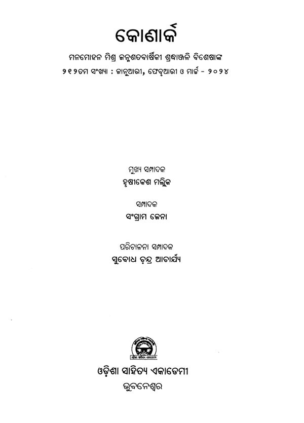 କୋଣାର୍କ- Konark Manmohan Mishra Birth Centenary Tribute Special Issue 212th Issue: January, February & March 2024 (Oriya)