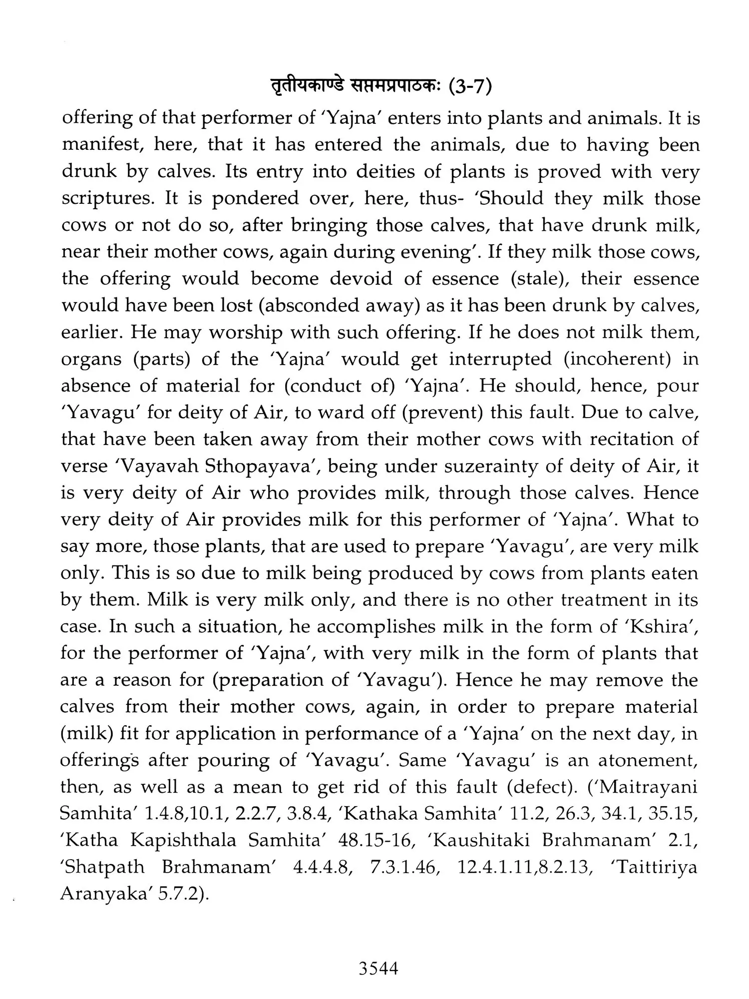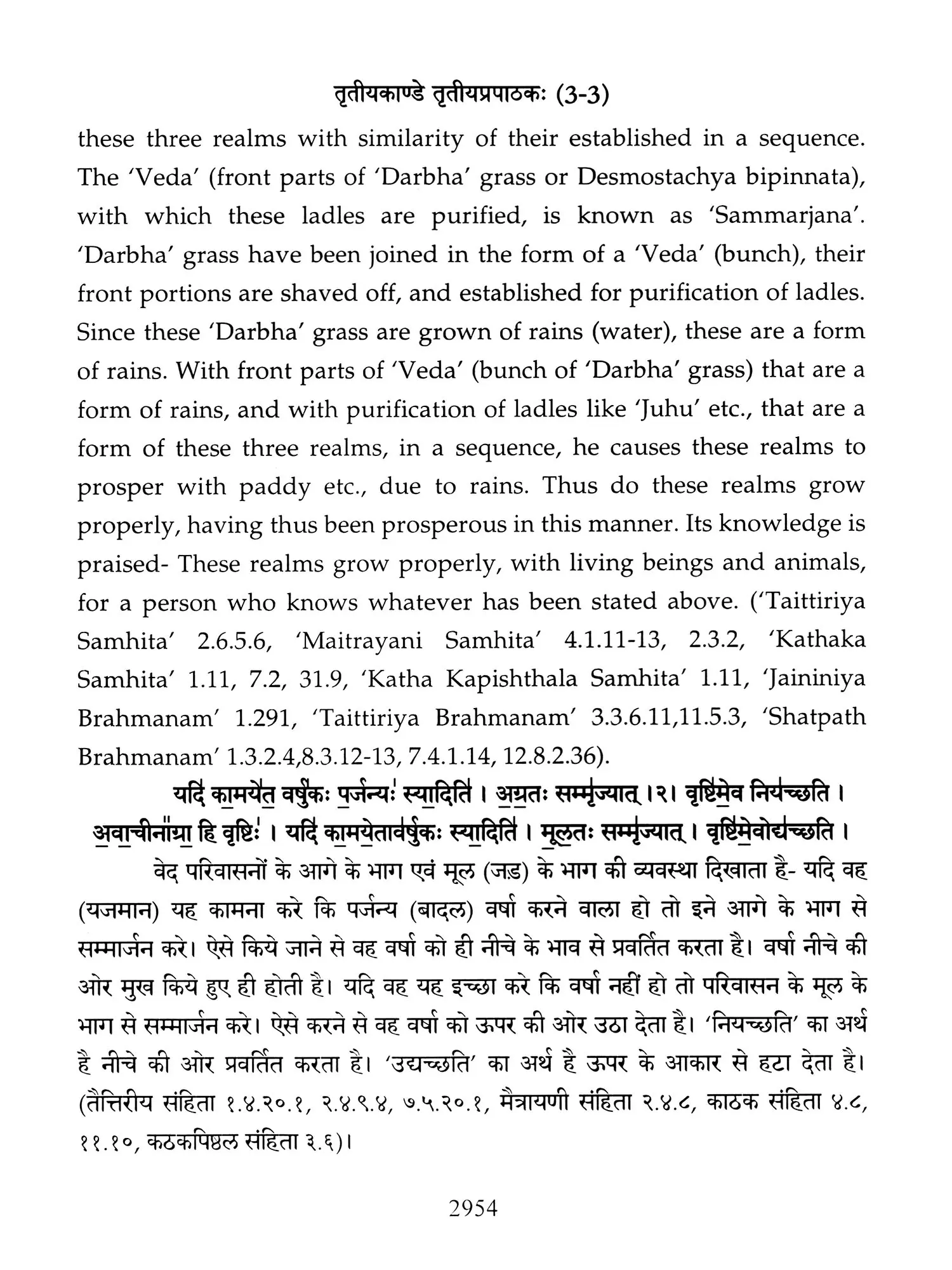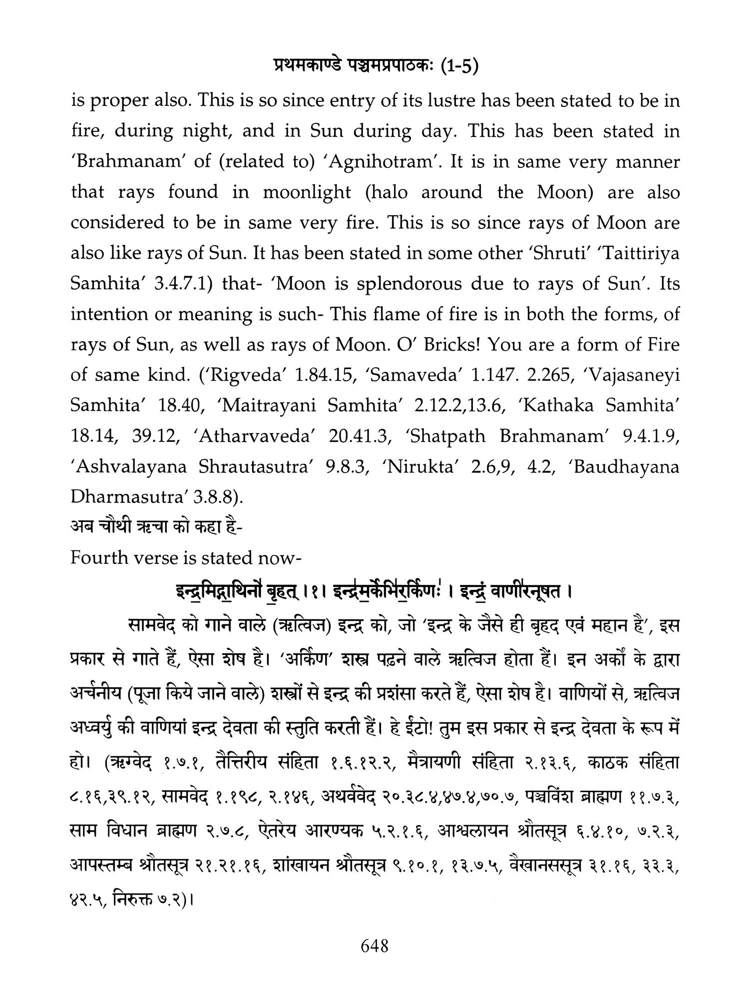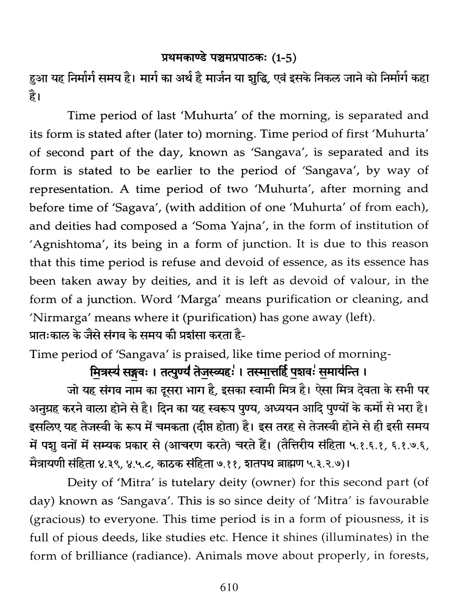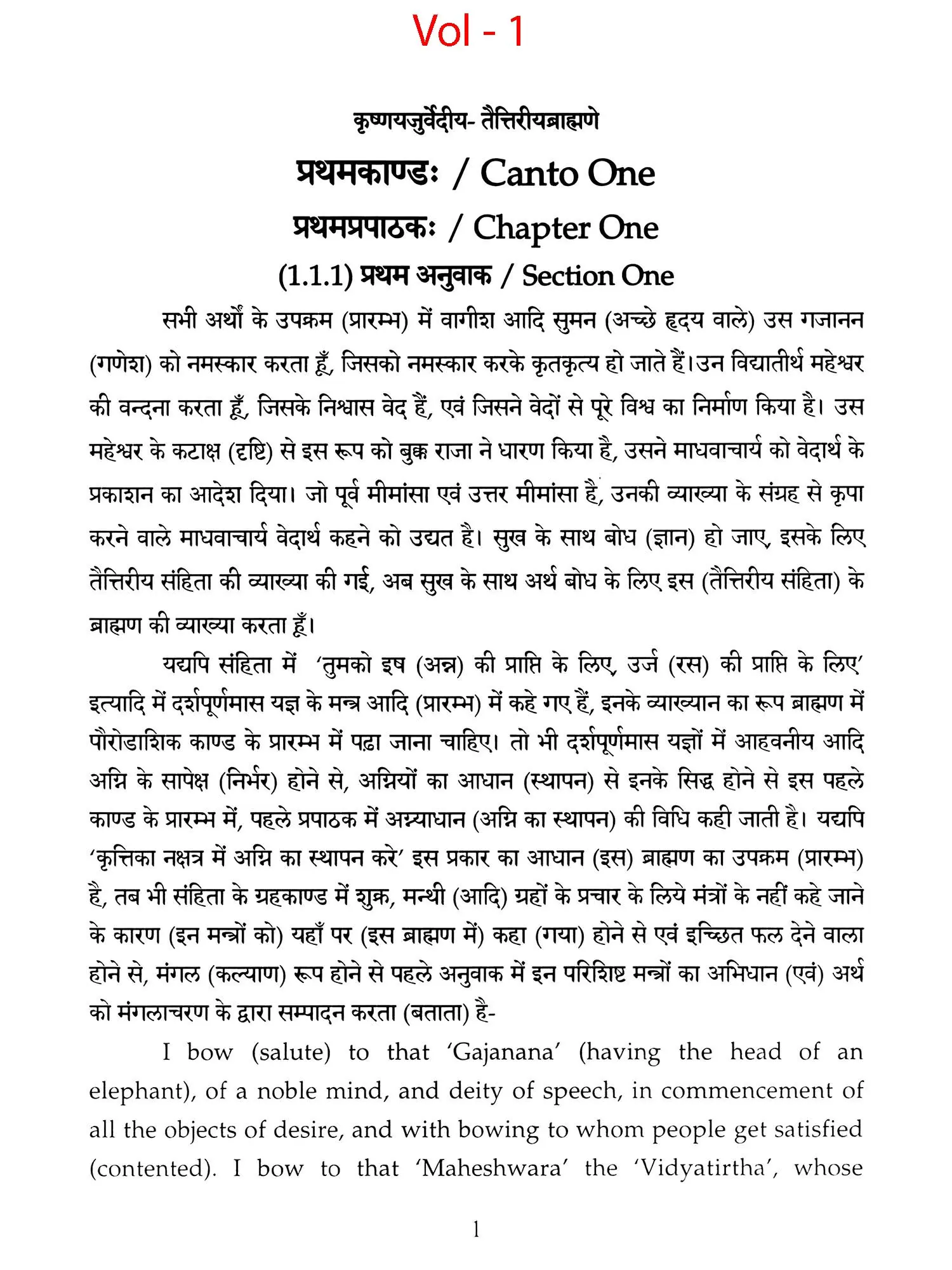 Chapters 6 to 8 of Canto one and chapters 2,3 and 5 of 'Taittiriya Brahmnanam' had been already explained and commented upon by 'Acharya Sayana' much before he commenced upon writing commentary on 'Taittiriya Samhita'. Since these were in the earlier and introductory cantos of the *Samhita', the commentary is too elaborate and relies heavily upon 'Jaiminiya Nyayamala', to explain various processes of 'Yajnas' and to reply frequently asked questions. It is seen that all the publishers, who have otherwise published commentary by 'Sayana', have opted to leave these six chapters without any commentary, even without giving a hint as to where would one find it. In order to make present work exhaustive, those portions have been taken from 'Samhita' and the commentary on these sections has been included in the present work so that the reader does not need to refer to the 'Samhita portion. Efforts have been made to point out the location of those references from treatises that have been referred to by 'Sayana' in the commentary, but as was usual in those days, names of the treatises as well as the reference to chapter, section and verse/sentence number have not been mentioned. In same very manner, references from other branches of 'Veda Samhitas', 'Brahmanam', 'Aranyaka', 'Upanishads', 'Shrautasutras', 'Grihyasutras' and 'Brihaddevata' have been provided, in case of both verses as well as sentences of 'Brahmanam' so that the reader is able to know and refer to the same, as extension of the study. The reader may also look into those treatises referred to and compare with the commentaries written on them. This is just a lead for those who want to have an exhaustive and comparative study in the matter.