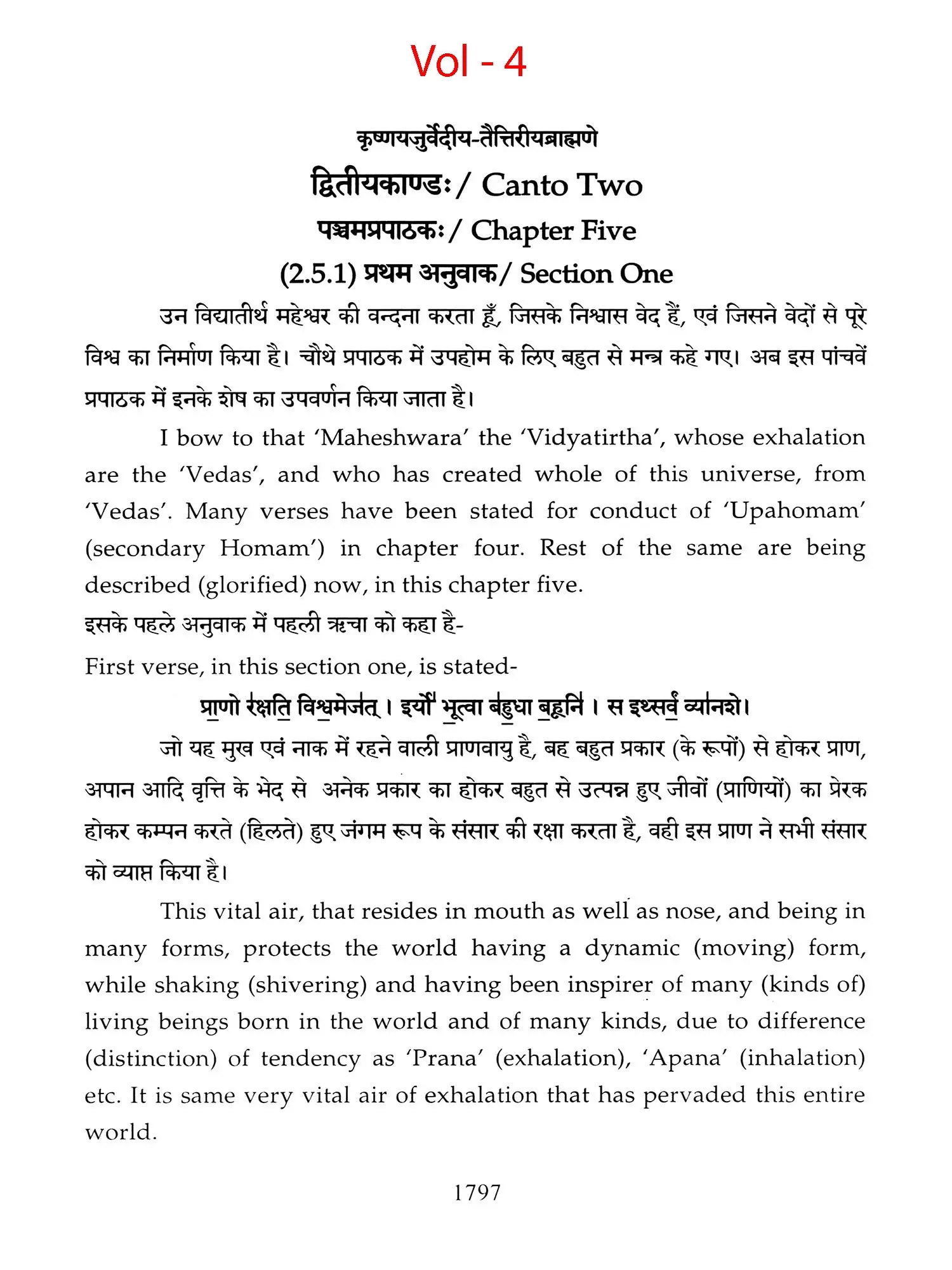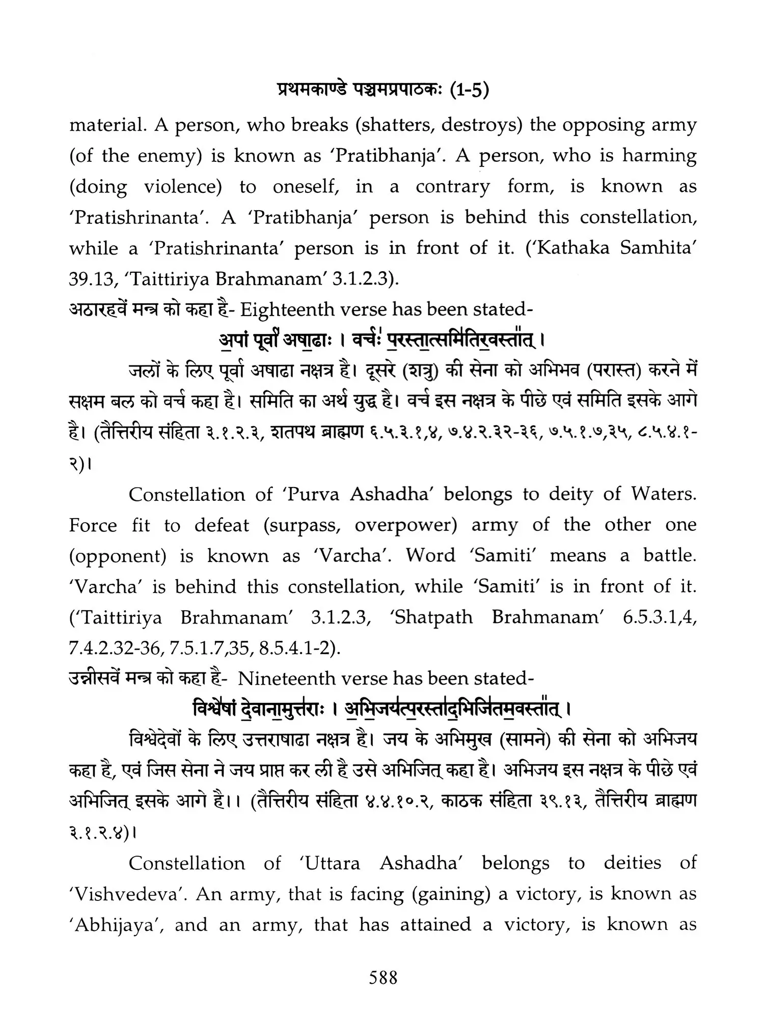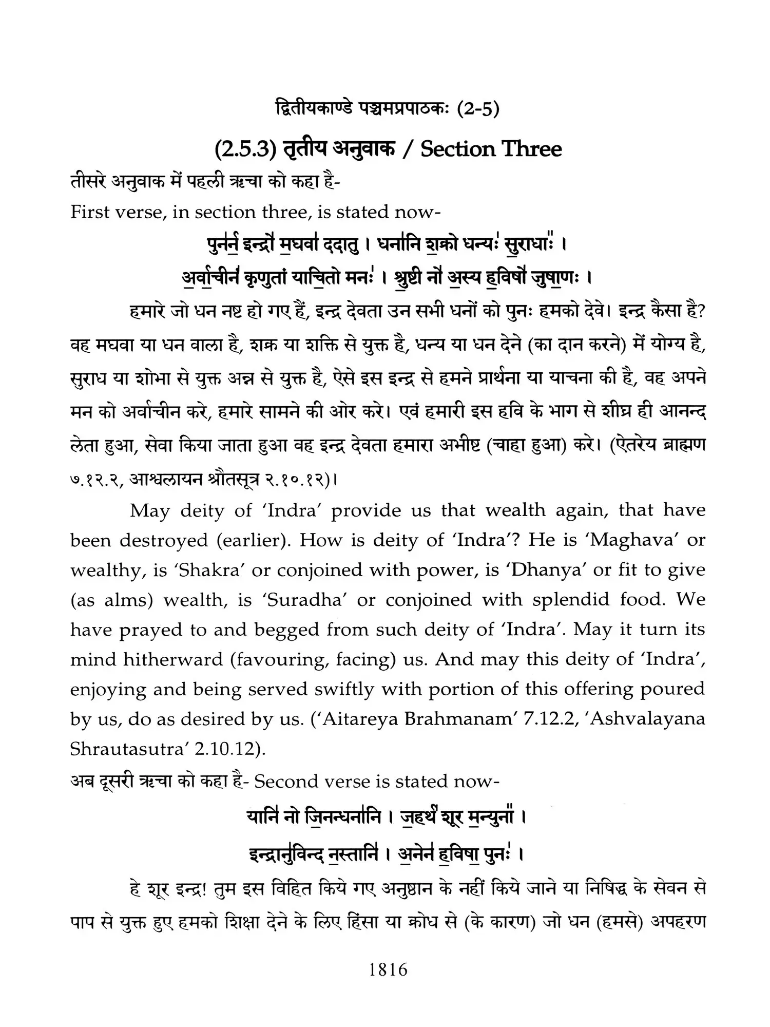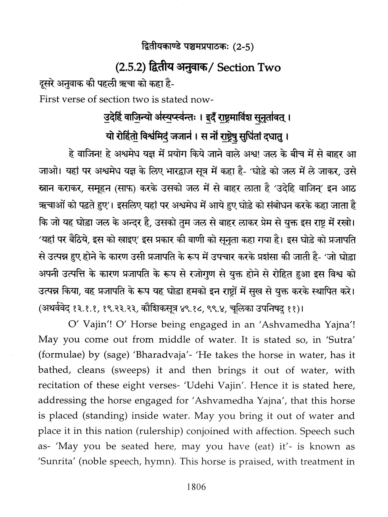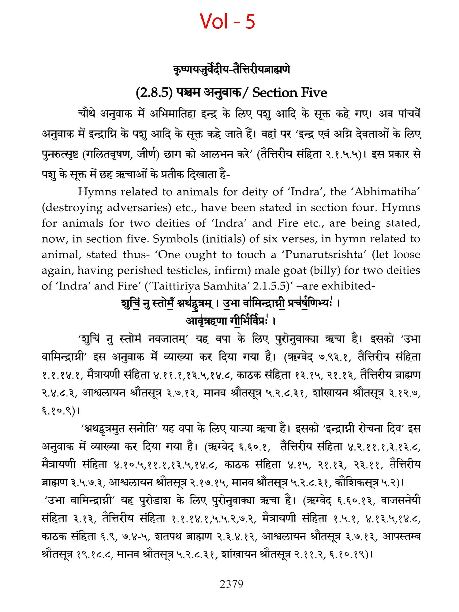 Chapters 6 to 8 of Canto one and chapters 2,3 and 5 of 'Taittiriya Brahmnanam' had been already explained and commented upon by 'Acharya Sayana' much before he commenced upon writing commentary on 'Taittiriya Samhita'. Since these were in the earlier and introductory cantos of the *Samhita', the commentary is too elaborate and relies heavily upon 'Jaiminiya Nyayamala', to explain various processes of 'Yajnas' and to reply frequently asked questions. It is seen that all the publishers, who have otherwise published commentary by 'Sayana', have opted to leave these six chapters without any commentary, even without giving a hint as to where would one find it. In order to make present work exhaustive, those portions have been taken from 'Samhita' and the commentary on these sections has been included in the present work so that the reader does not need to refer to the 'Samhita portion. Efforts have been made to point out the location of those references from treatises that have been referred to by 'Sayana' in the commentary, but as was usual in those days, names of the treatises as well as the reference to chapter, section and verse/sentence number have not been mentioned. In same very manner, references from other branches of 'Veda Samhitas', 'Brahmanam', 'Aranyaka', 'Upanishads', 'Shrautasutras', 'Grihyasutras' and 'Brihaddevata' have been provided, in case of both verses as well as sentences of 'Brahmanam' so that the reader is able to know and refer to the same, as extension of the study. The reader may also look into those treatises referred to and compare with the commentaries written on them. This is just a lead for those who want to have an exhaustive and comparative study in the matter.