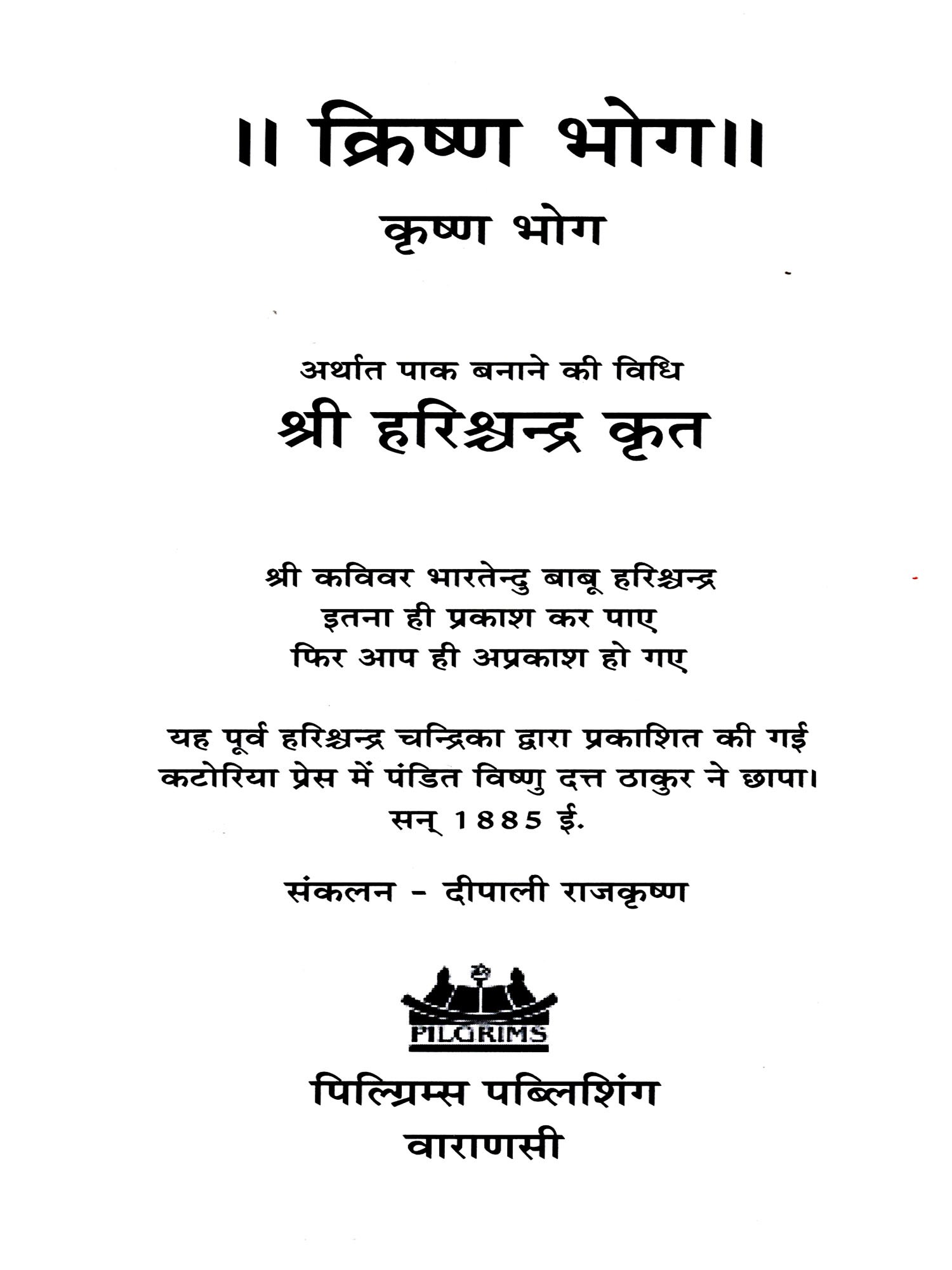 क्रिष्ण भोग- कृष्ण भोग अर्थात् पाक बनाने की विधि: Krishnna Bhoga : Arthaata, Paaka Banaane Kī Vidhi