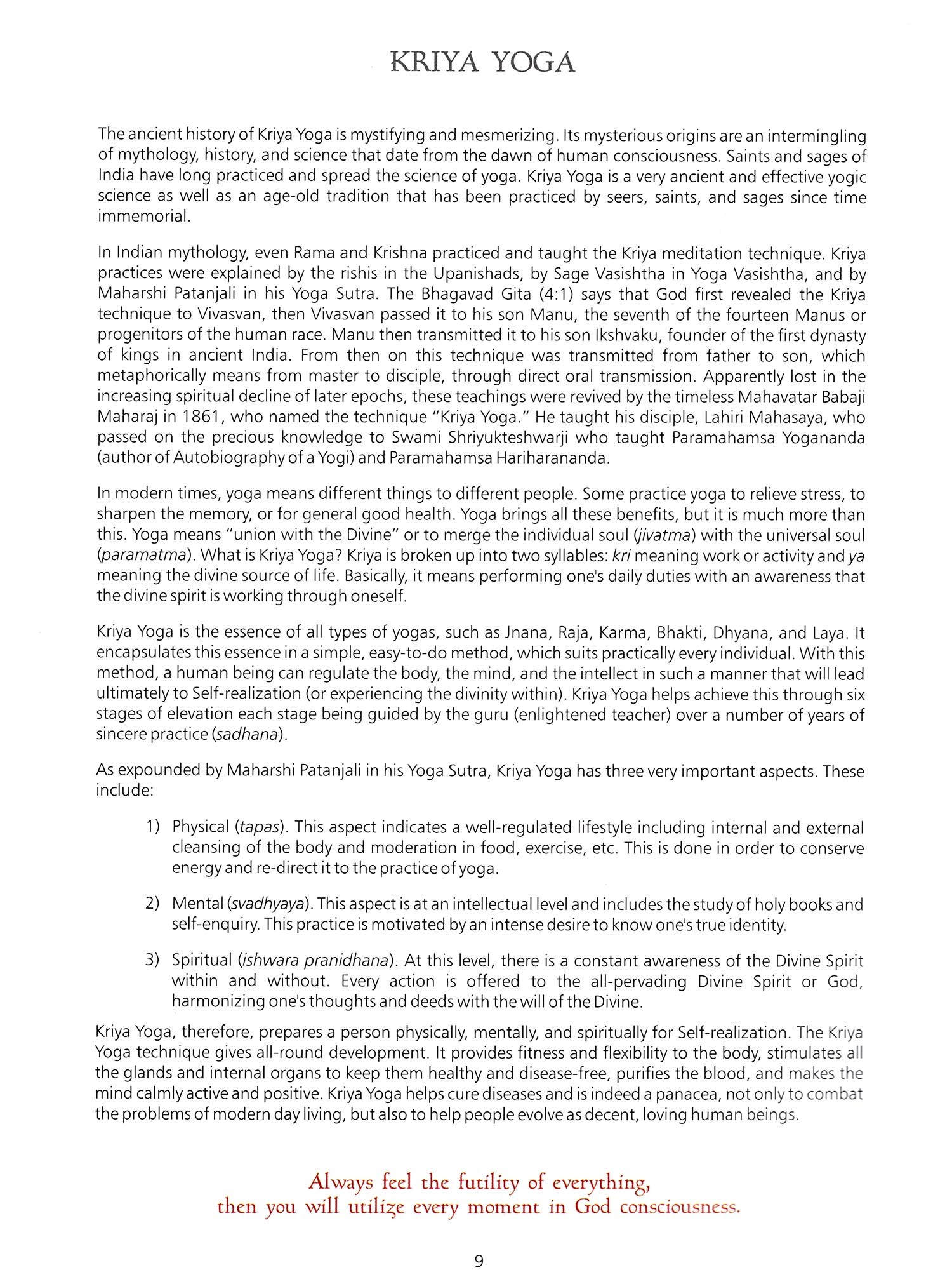 Kriya Yoga in the Flow of Omniscience