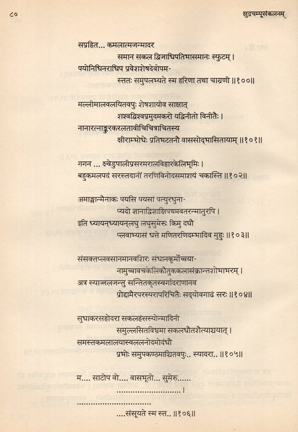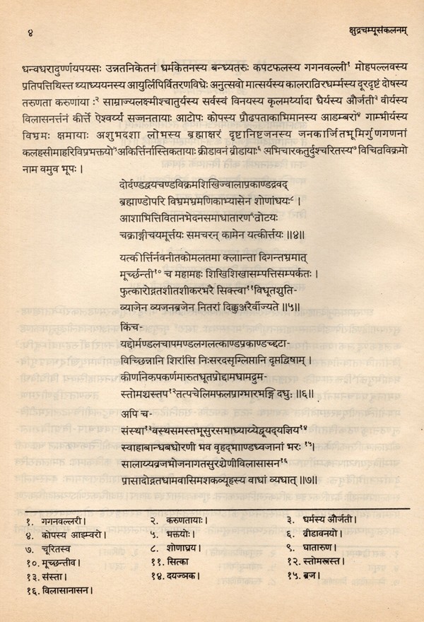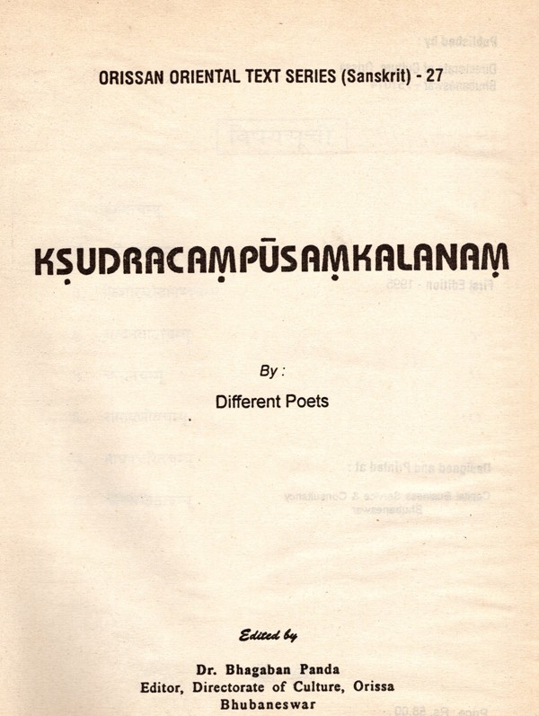 In the present edition of "Kşudra campūsamkalana eight selected small campů works composed by different poets of Orissa have been collected. They are edited on the basis of the following manuscripts preserved in the Manuscript Library of the Orissa State Museum, Bhubaneswar. The help of some printed non-available works has also been taken-up at the time of editing of this collection.
