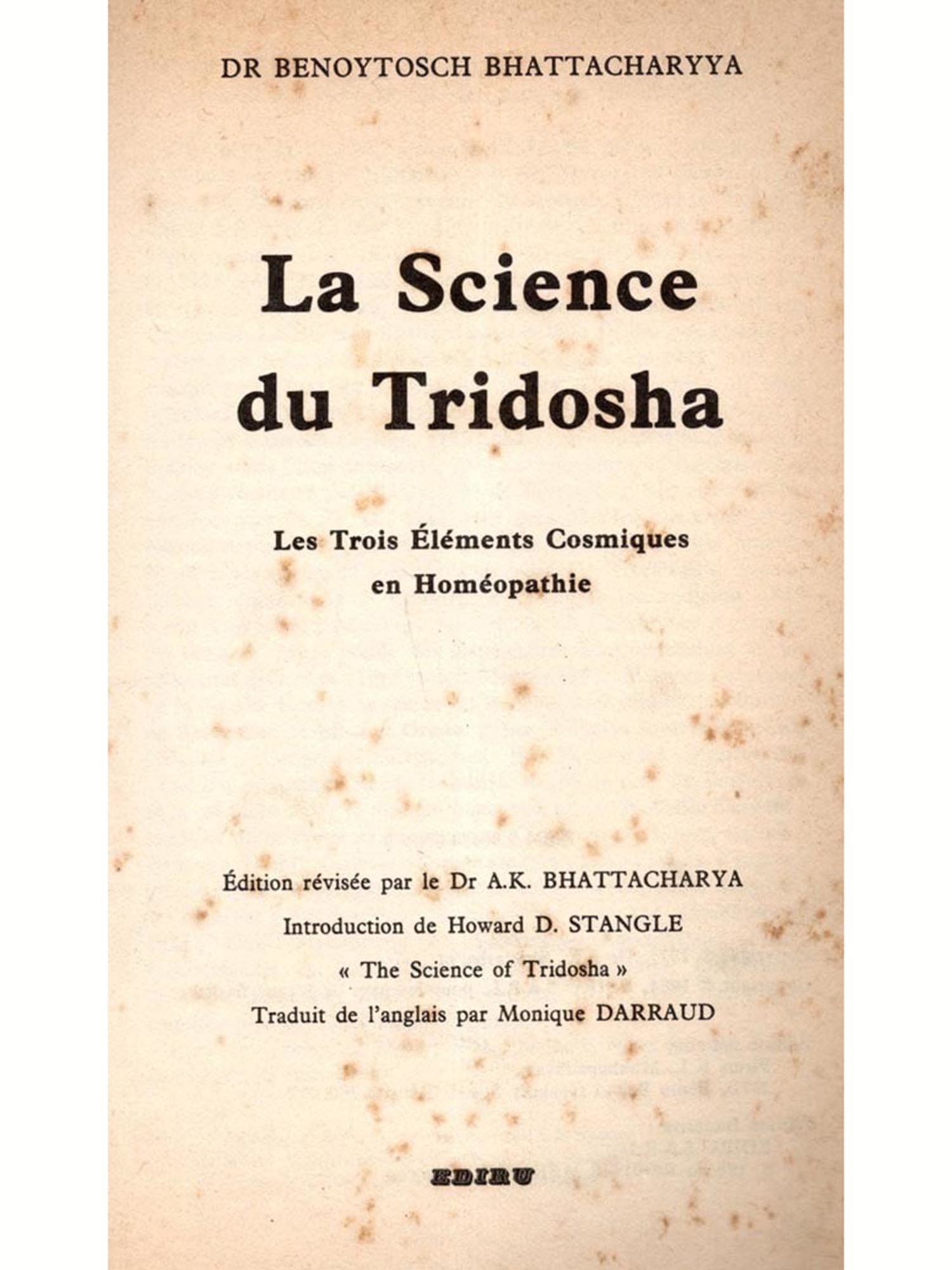 Voici comment l'auteur en est venu à écrire ce livre. Le Dr Bhattacharyya a fait paraître pendant quelques années un journal connu sous le nom de Bulletin Homéopathique, publié par son dispensaire homéopathique à Baroda, Inde. Au fur et à mesure de sa publication, il a développé point par point la théorie du Tridosha. Quelques uns de ces articles tombèrent entre les mains de mécènes occidentaux. Il aurait été étonnant que ces nouveaux et étranges principes de l'ancienne science ayurvédique ne trouve aucun écho.