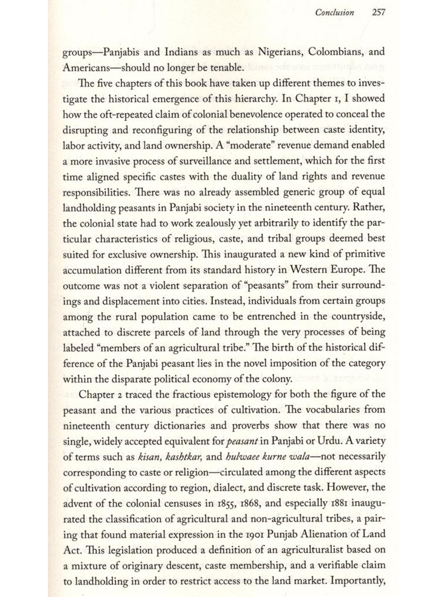 In 2020-21, a massive protest successfully rescinded three laws designed to deregulate India's agrarian economy. The epicentre was Panjab-a region long considered the subcontinent's breadbasket and home to a stalwart peasantry. In the public imagination, the Panjabi peasant is self-evident and timeless-a figure who has endured centuries of upheavals to arrive virtually unchanged into the present. This grand narrative assumes that peasantries have always existed everywhere in the world. Such claims conceal the modern transformation of agriculture and farmers.