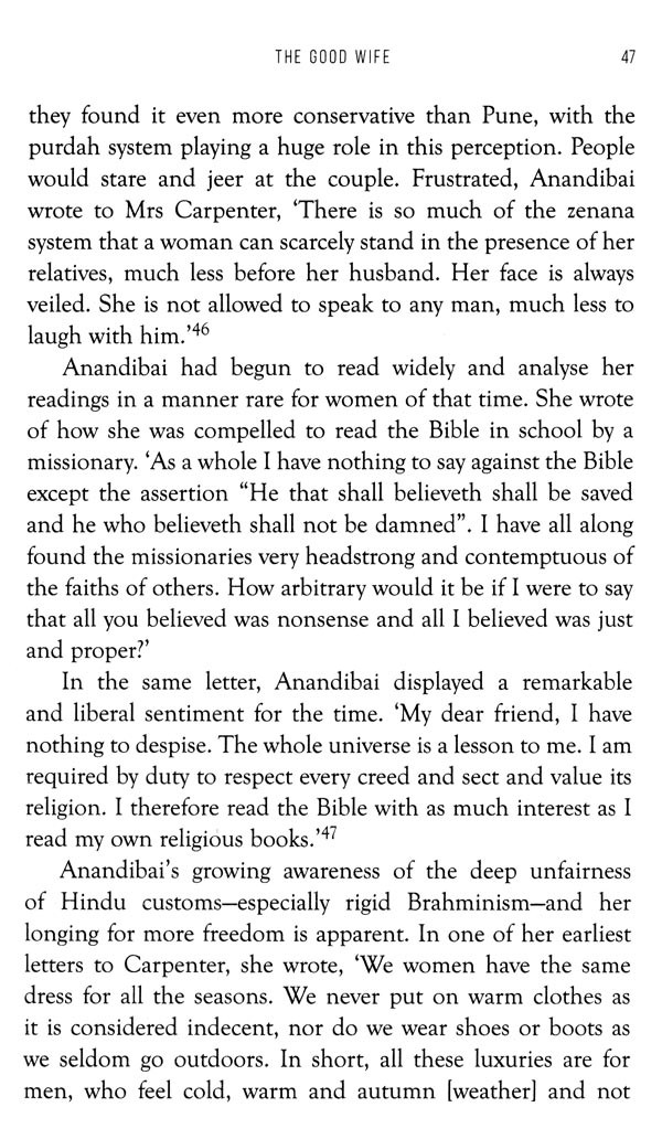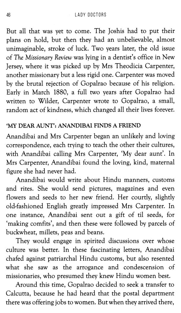It was 24 February 1883. A diminutive eighteen-year-old girl stood up before an entirely male audience in the town hall of Serampore, West Bengal, seeking approval for an unprecedented plan. Her presence by itself was worthy of notice. At the time, women did not leave their homes-certainly not to address men. But what this solemn young woman was saying was even more unusual. She was announcing her intention to sail across the ocean, breaking caste rules and courting ostracism, to study medicine in the US. Alone. The first Indian woman to ever do so. The girl was Anandibai Joshi, who would eventually become India's first woman doctor. On that crucial day, she gave such a convincing performance that her speech was later turned into a pamphlet. 'Why do I go to America?" she asked. 'I go to America because I wish to study medicine. The want of female physicians in India is keenly felt in every quarter.' Anandibai went on to explain that the restricted freedoms allowed to Hindu women in India, and the harassment she had faced as she walked to school, made it near impossible for her to study in India. To continue to live as a Hindu and go to school in any part of India is very difficult."