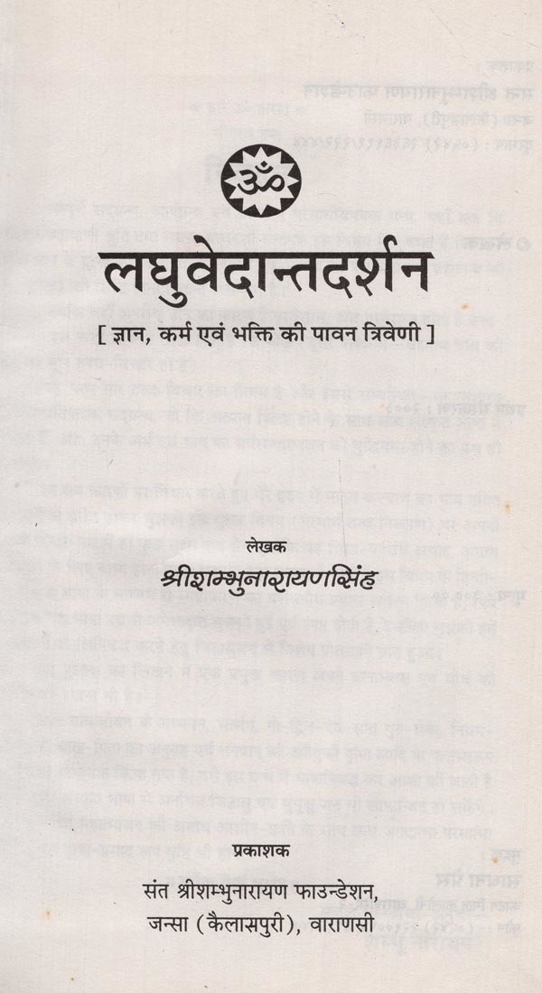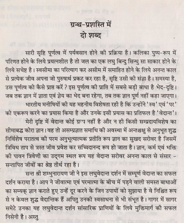 लघुवेदान्तदर्शन: ज्ञान, कर्म एवं भक्ति की पावन त्रिवेणी- Laghu Vedanta Darshan: The Holy Triveni of Knowledge, Karma and Devotion (An Old and Rare Book)