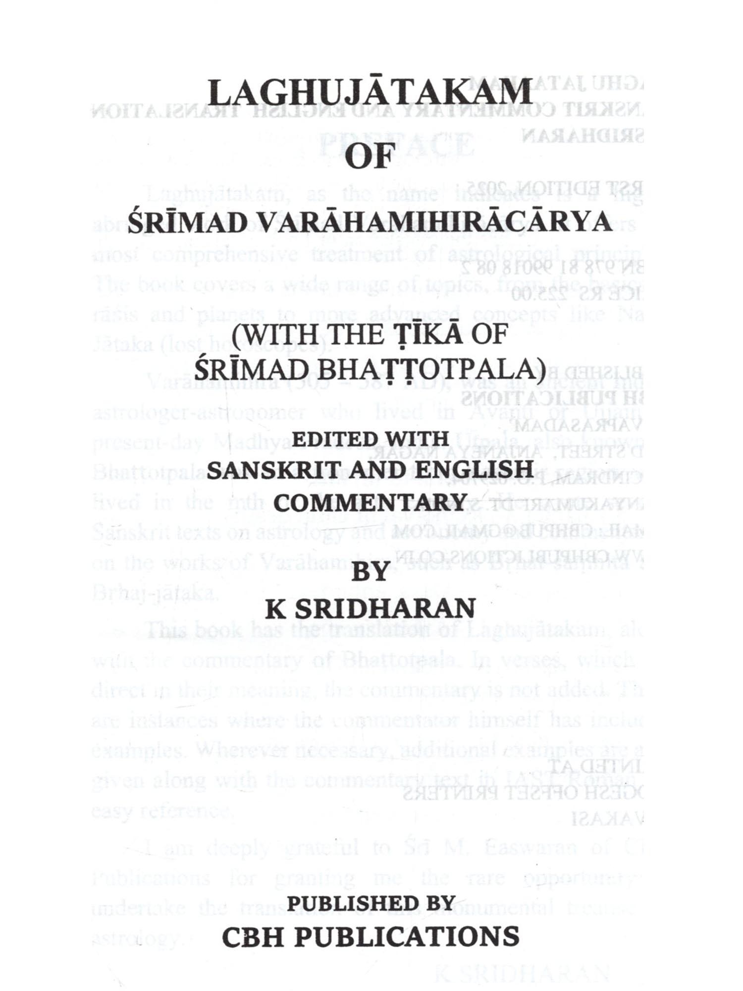 Laghujatakam of Srimad Varahamihiracarya (With the Tika of Srimad Bhattotpala)