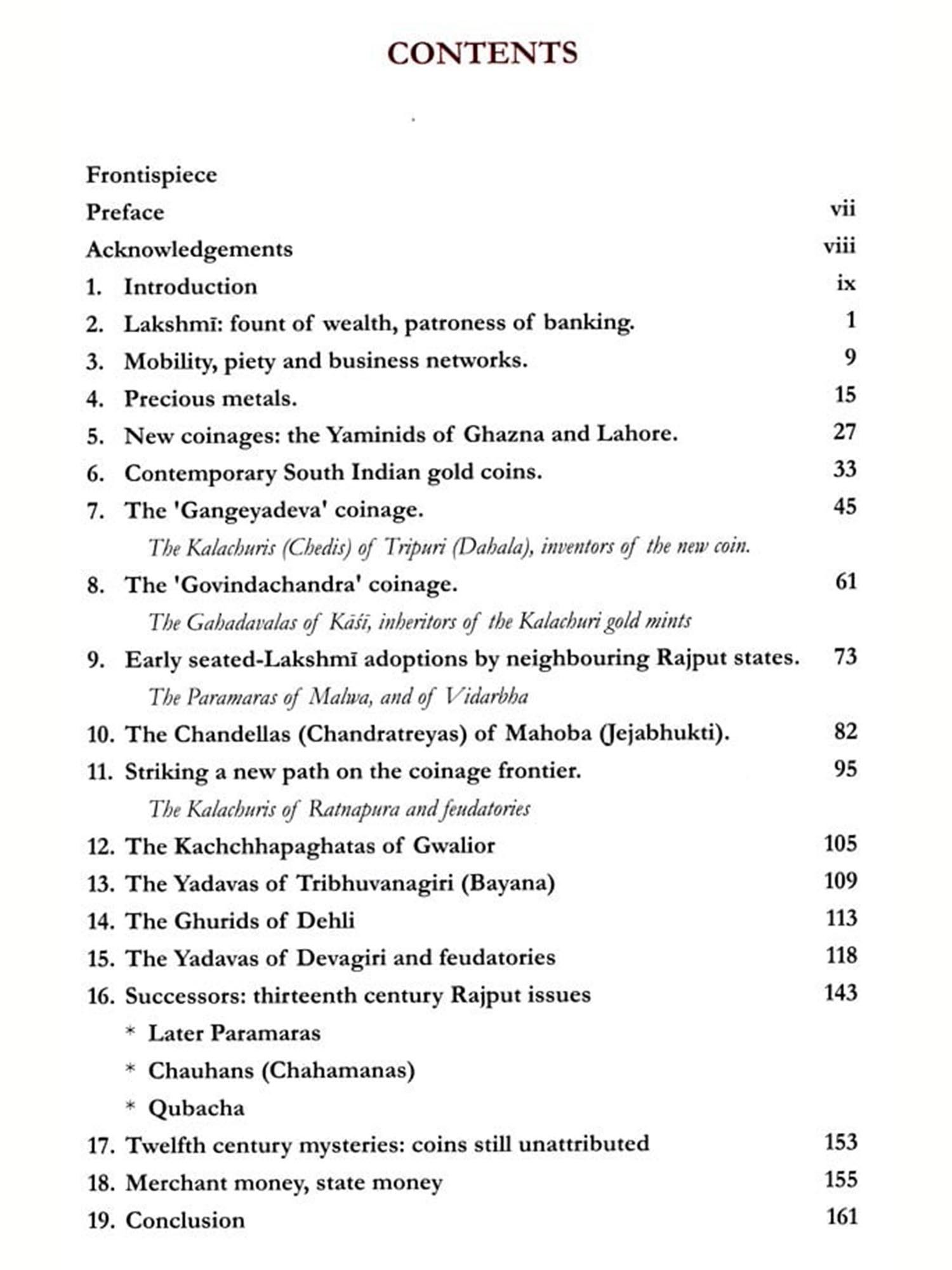 As Michael Bates often reminds us, coins are, first and foremost, money. Equally important, in my mind, is that the re-emergence of gold coinage in North India in the eleventh century (and South India in the tenth century), was not merely a monetary or economic phenomenon, but was indicative of strong cultural trends and changes in religious observance and practices. Hence, this volume is dedicated to the goddess who endows life with grace, beauty, and plenty.