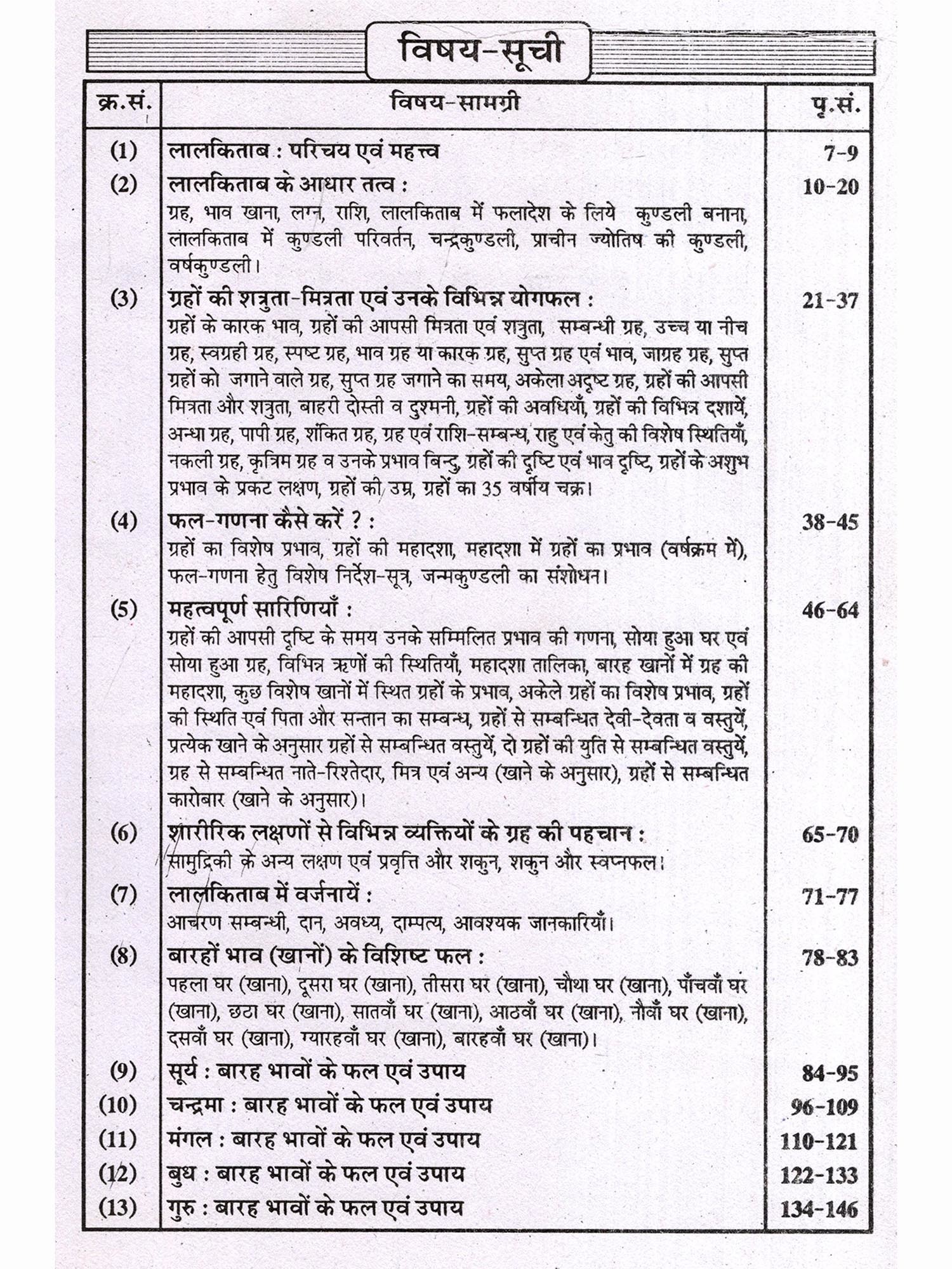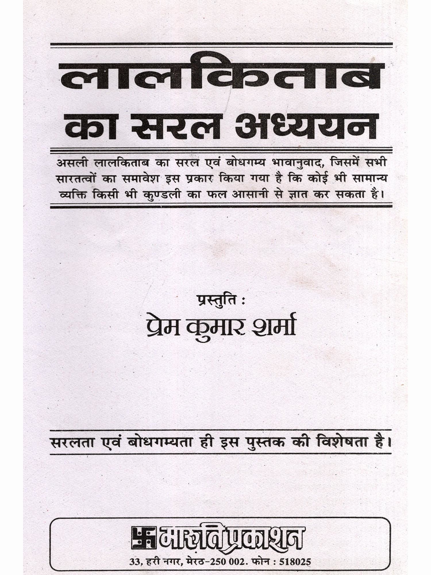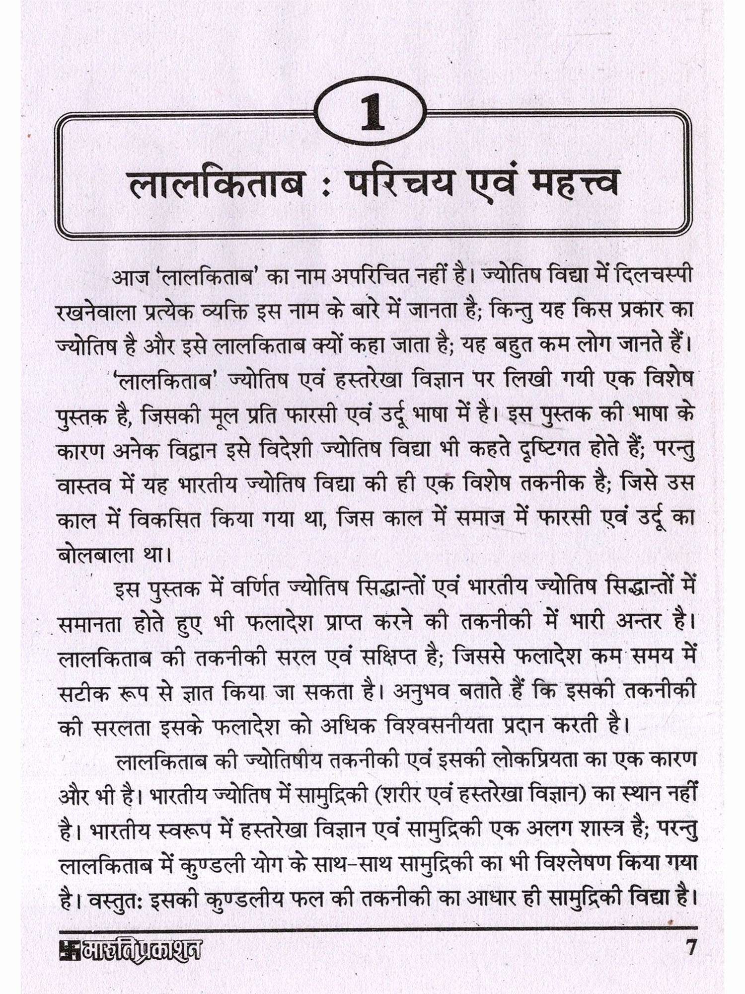 इसी समस्या को ध्यान में रखकर यह पुस्तक लिखी गयी है। यह 'लालकिताब' की प्रतिलिपि नहीं है। इसमें विषय का समायोजन, सम्पादन, प्रस्तुतिकरण एवं इसकी व्याख्या मौलिक रूप में की गयी है, ताकि यह सरल एवं बोधगम्य रूप में पाठकों तक पहुँच सके। इस संस्करण के द्वारा सामान्य परिश्रम से ही कोई भी व्यक्ति किसी भी कुण्डली का फल ज्ञात कर सकता है और अशुभ प्रभाव से बचने का उपाय कर सकता है।