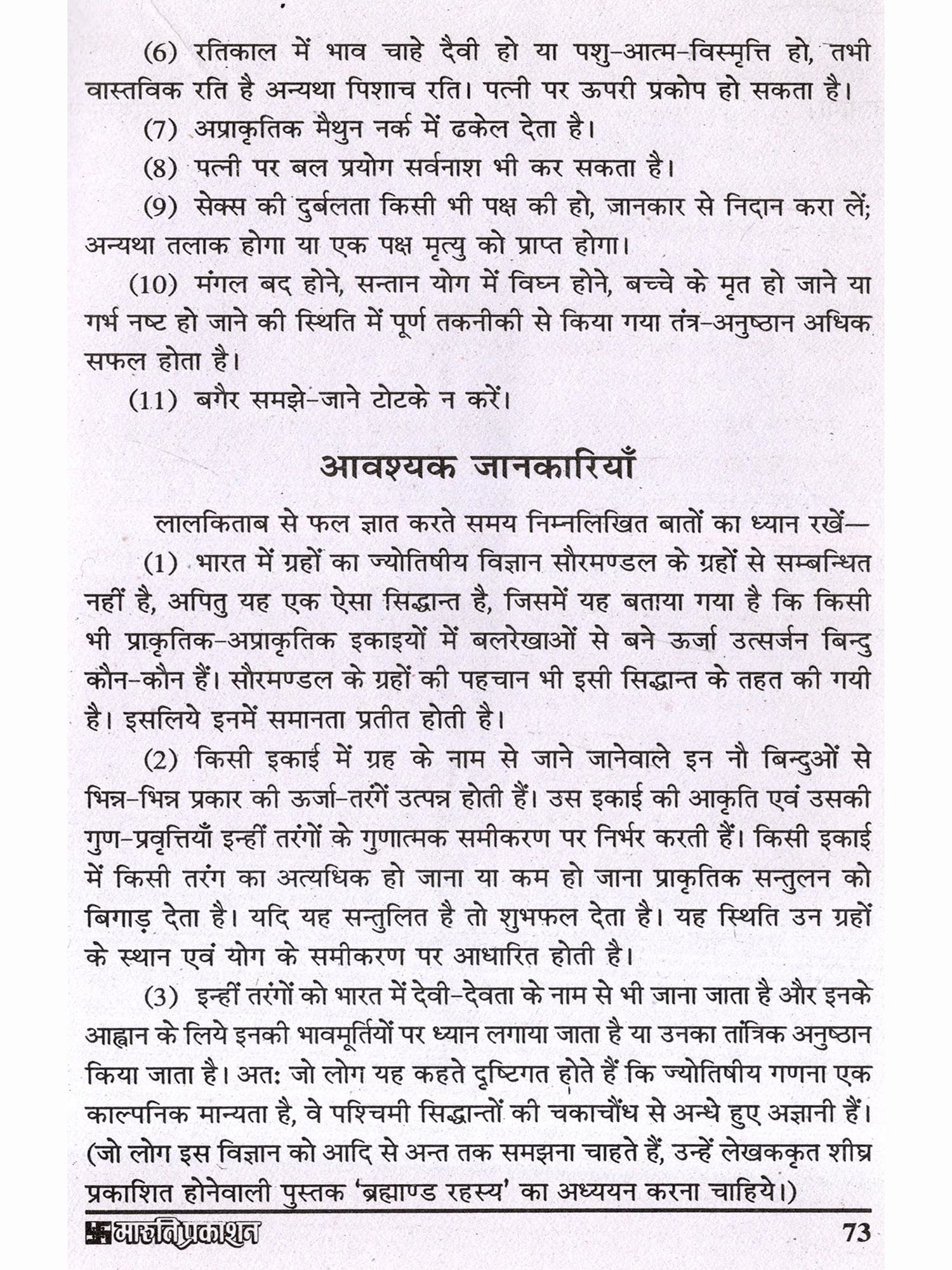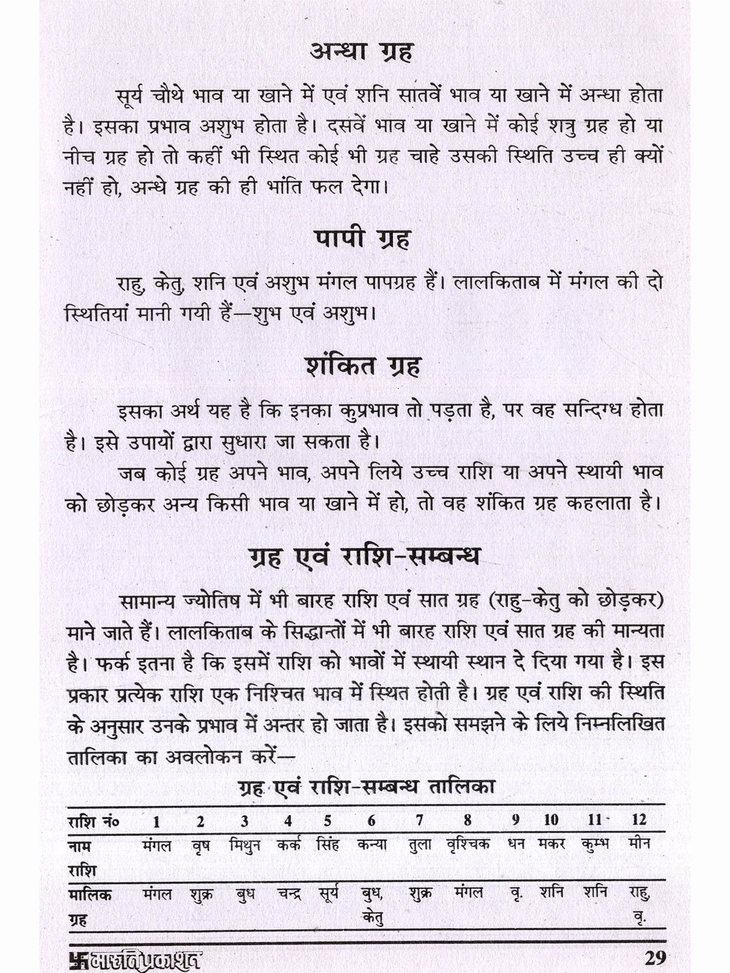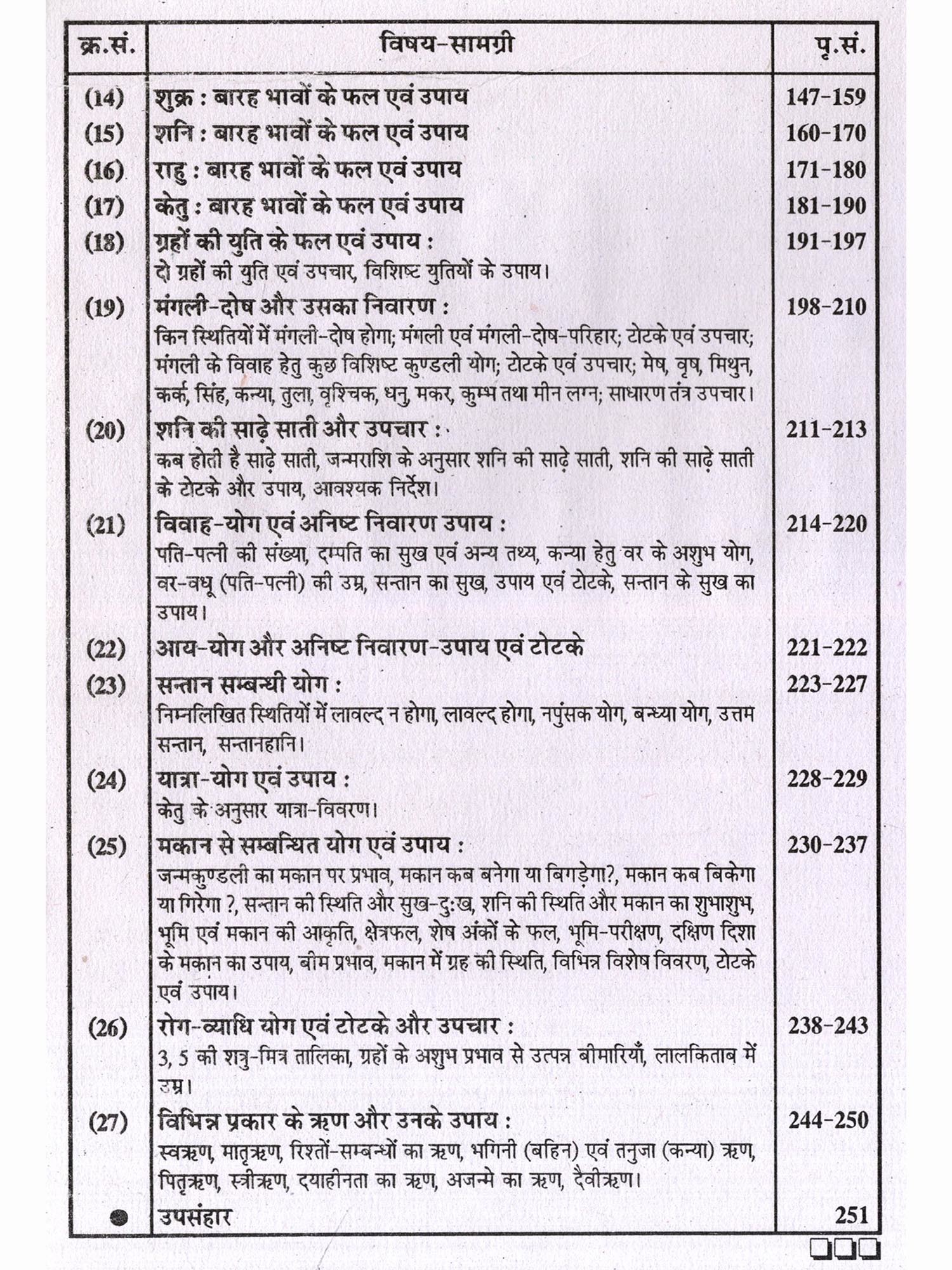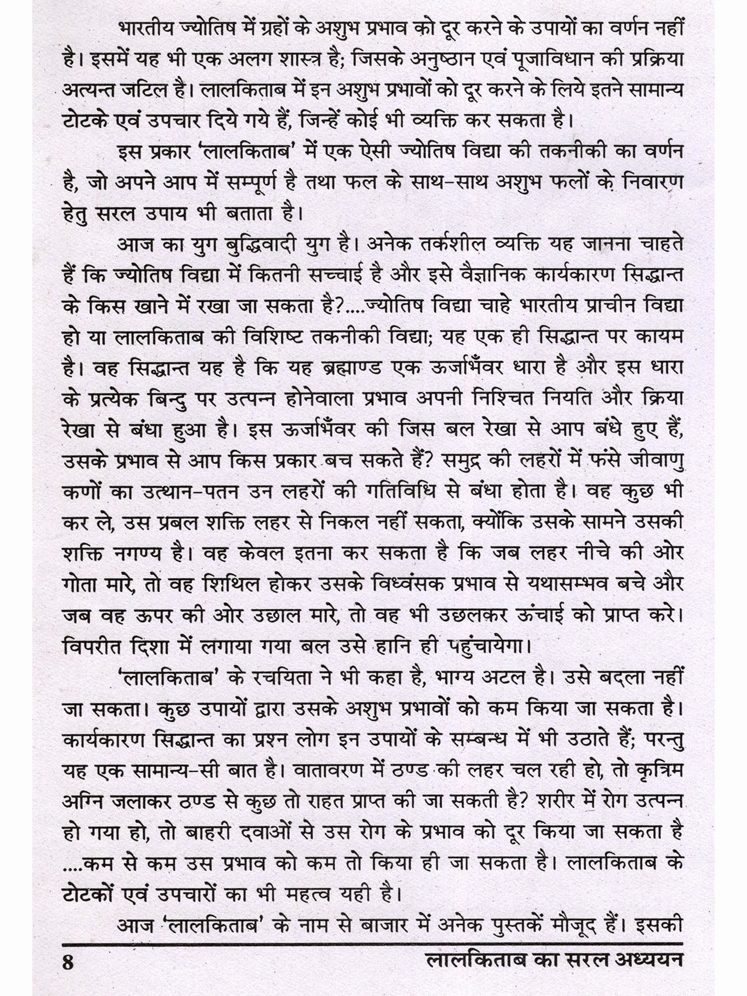 इसी समस्या को ध्यान में रखकर यह पुस्तक लिखी गयी है। यह 'लालकिताब' की प्रतिलिपि नहीं है। इसमें विषय का समायोजन, सम्पादन, प्रस्तुतिकरण एवं इसकी व्याख्या मौलिक रूप में की गयी है, ताकि यह सरल एवं बोधगम्य रूप में पाठकों तक पहुँच सके। इस संस्करण के द्वारा सामान्य परिश्रम से ही कोई भी व्यक्ति किसी भी कुण्डली का फल ज्ञात कर सकता है और अशुभ प्रभाव से बचने का उपाय कर सकता है।