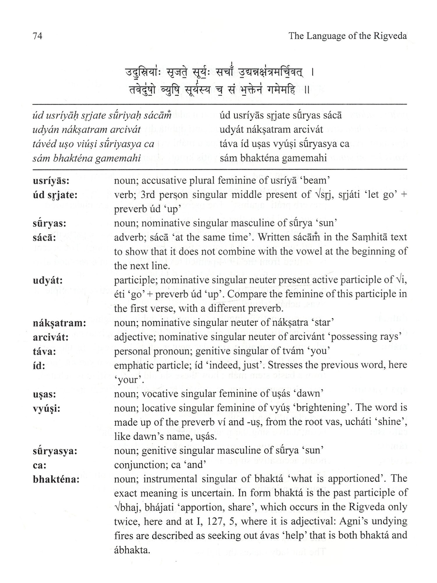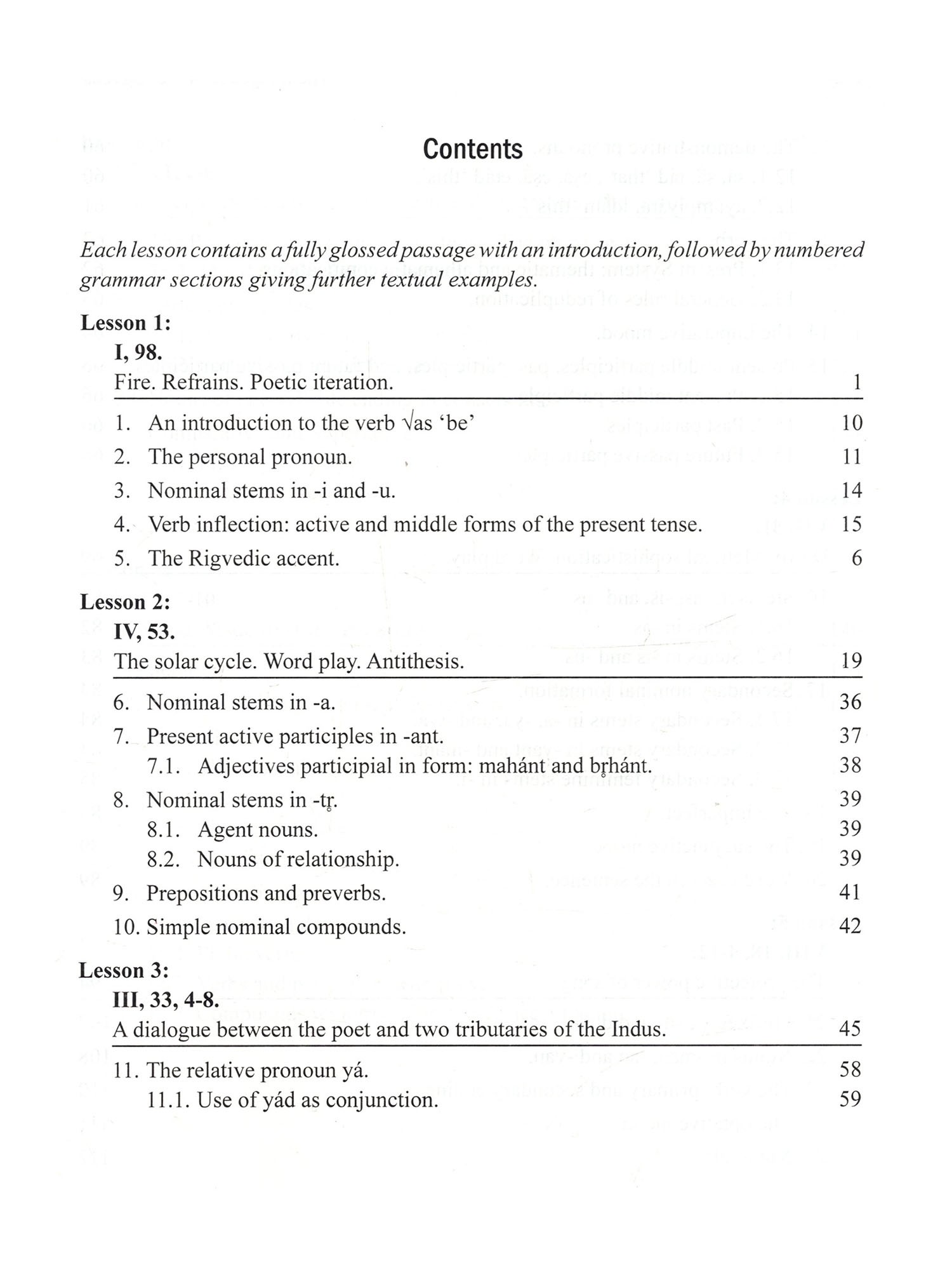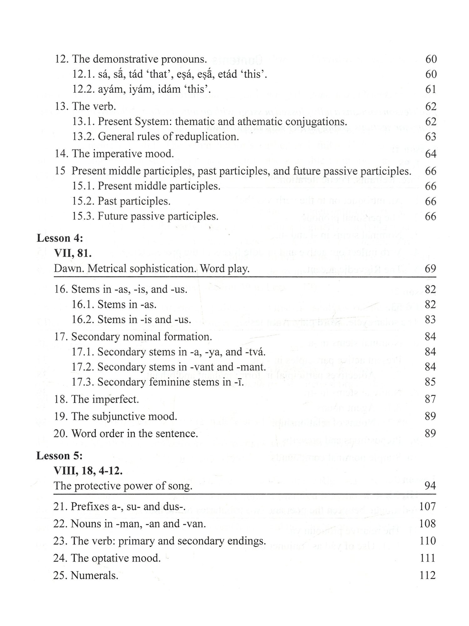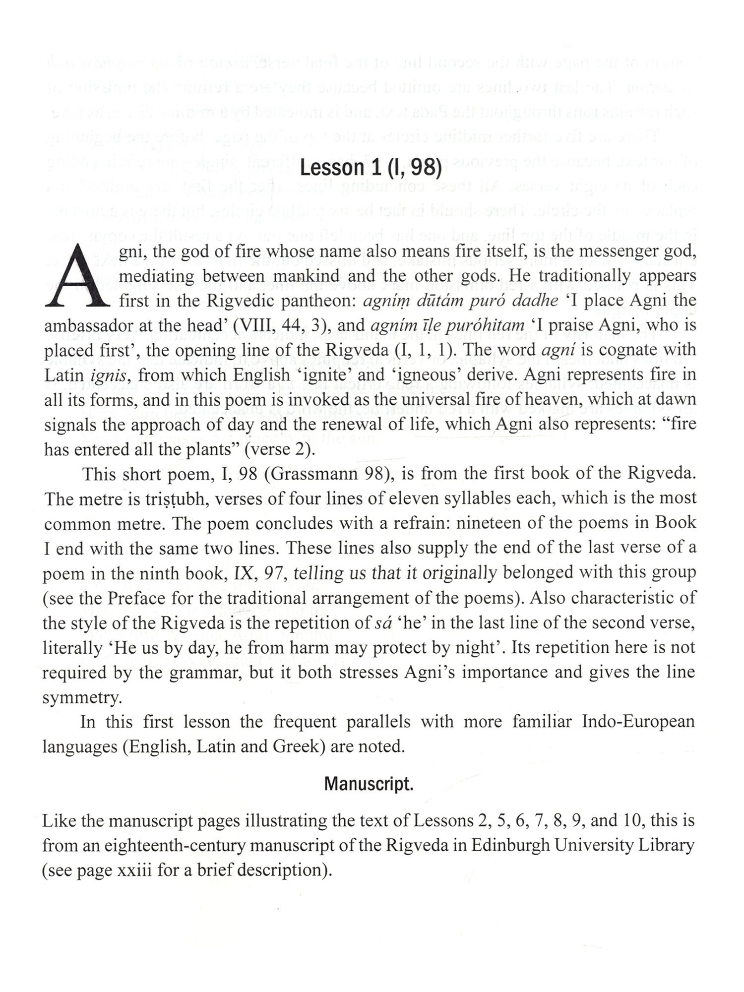This course on Rigvedic Sanskrit, a dialect that is "clearly not the direct ancestor of Classical Sanskrit" (Emeneau), provides a complete introduction to the language of the poems, and is designed to encourage renewed and independent study of this important anthology. Each lesson contains a fully-glossed passage, followed by grammar sections giving examples from throughout the poems. No prior knowledge of later Sanskrit is necessary. "The Sanskrit of the Rig-Veda four thousand years ago was as perfect an instrument for what its users wanted to say as its modern descendant, Hindi, or as English."
