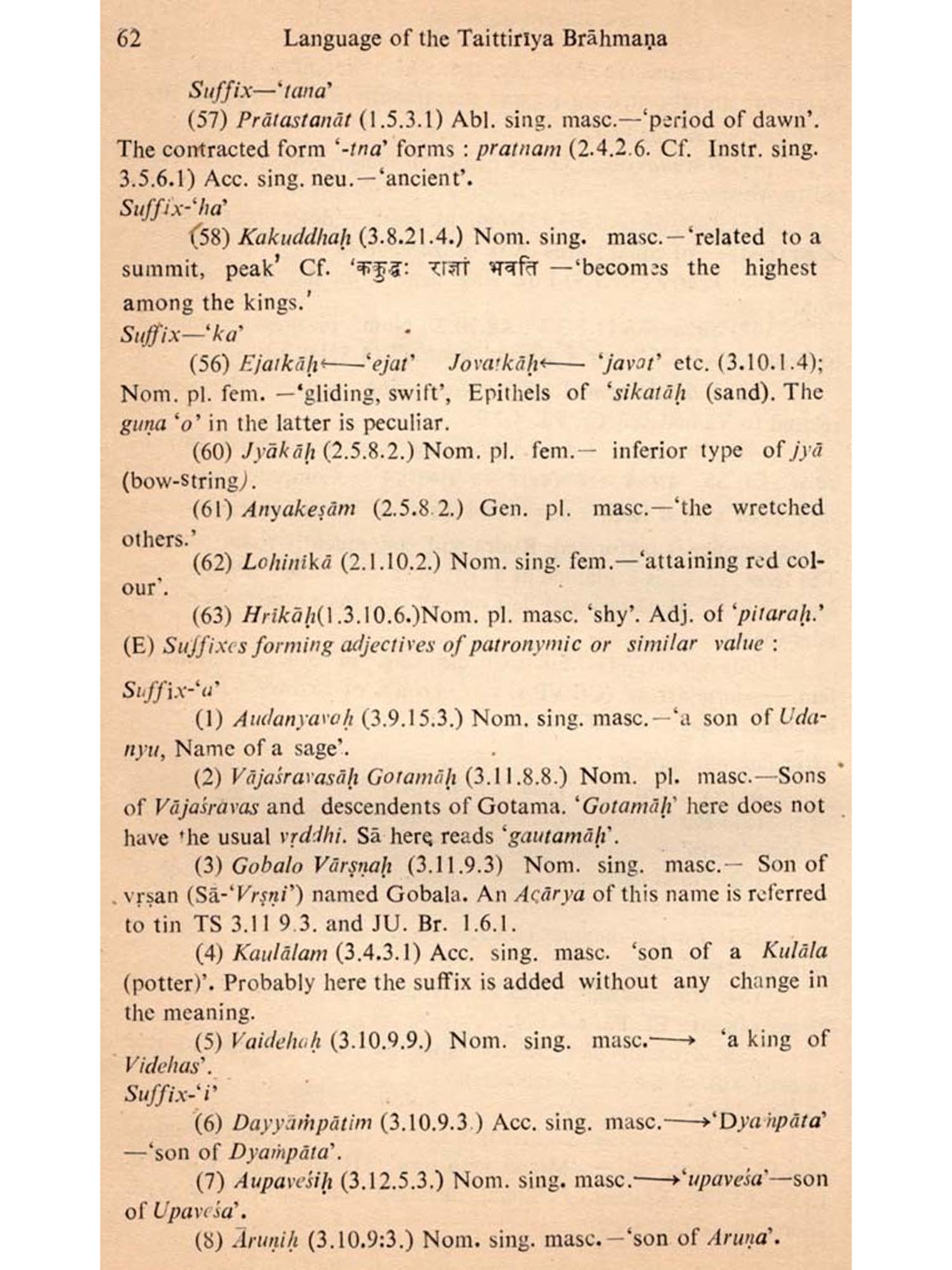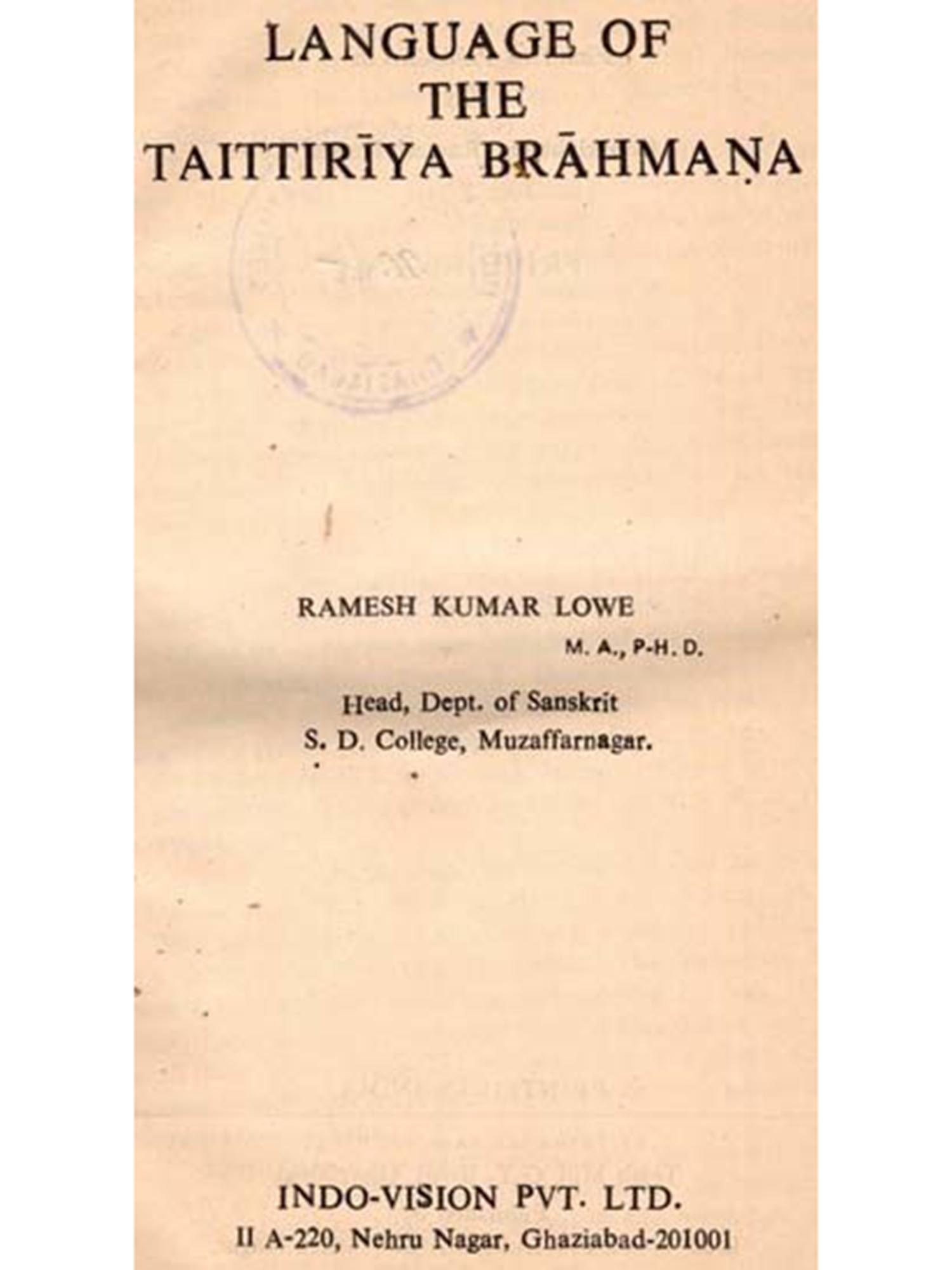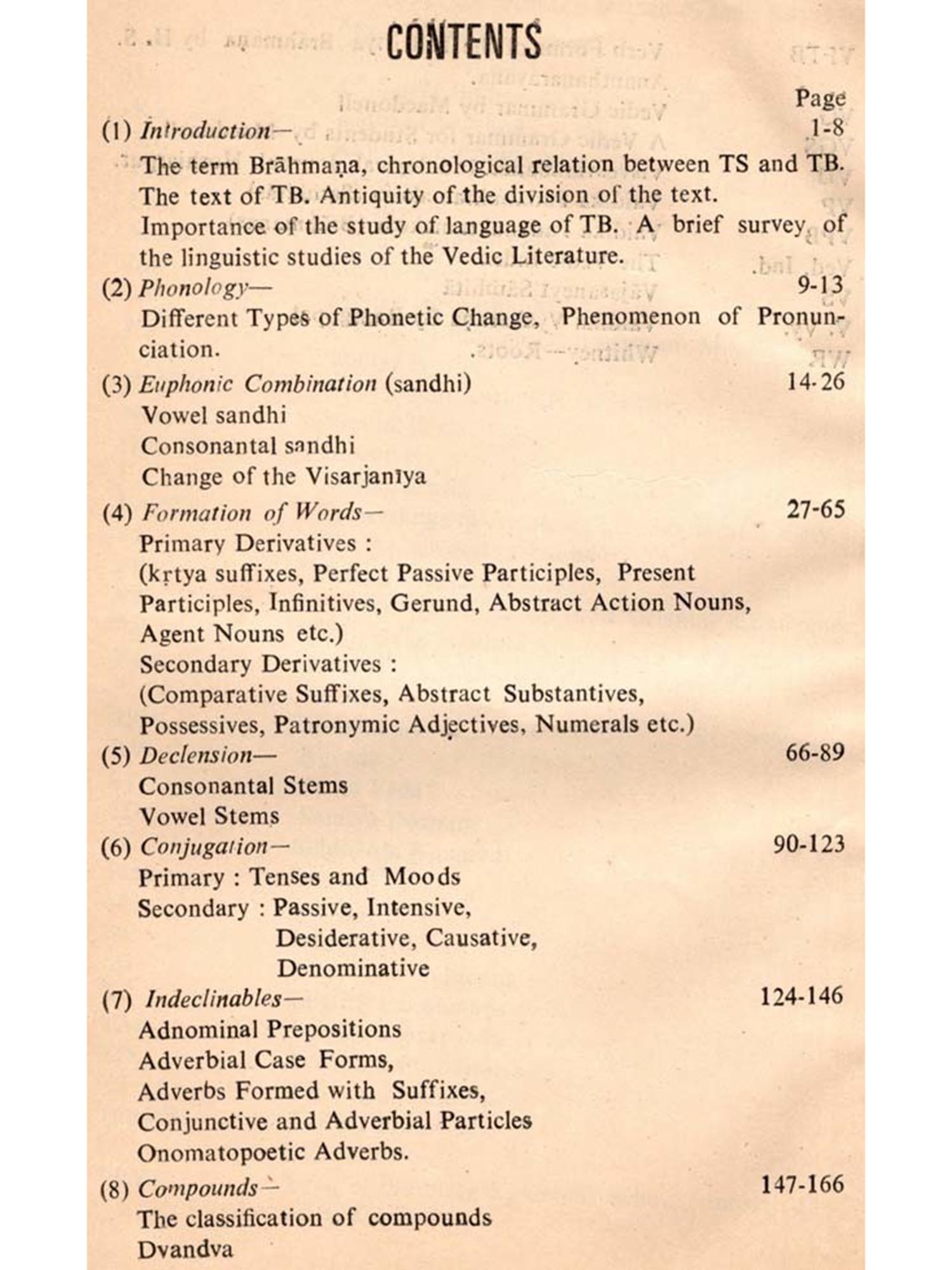 The present study represents a modest attempt at analysing the Language of the Taittirtya Brahmaņa, the oldest Brähmanical text. The language of this ancient Br. is full of great interests for the linguists and the Sanskrit scholars. It presents the earliest phase of the prose literature of Sanskrit.