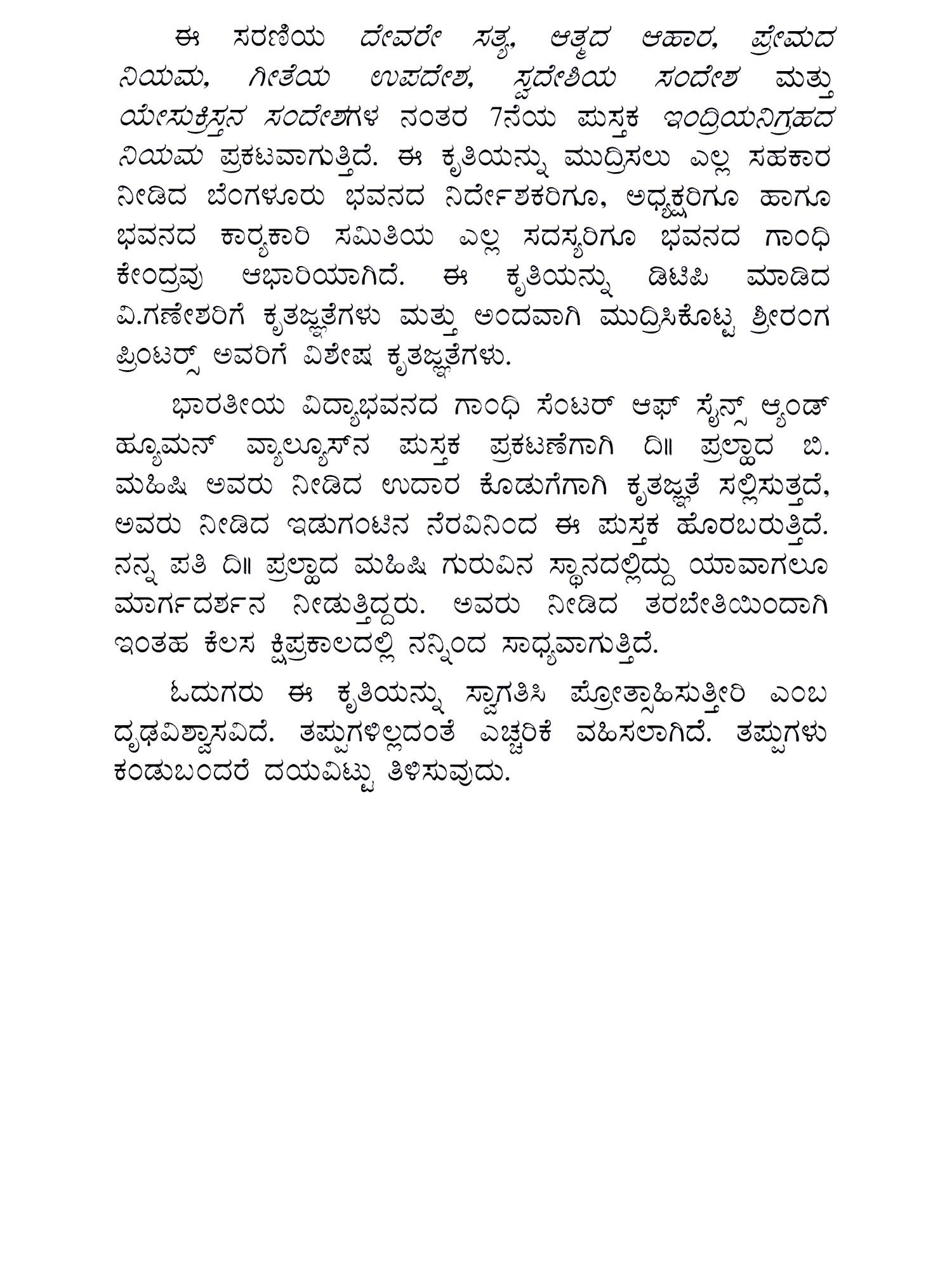 ಆತ್ಮಸಂಯಮದ ಮೂಲಕ- Atmasmyamada Moolaka: Through Self Control (Kannada)