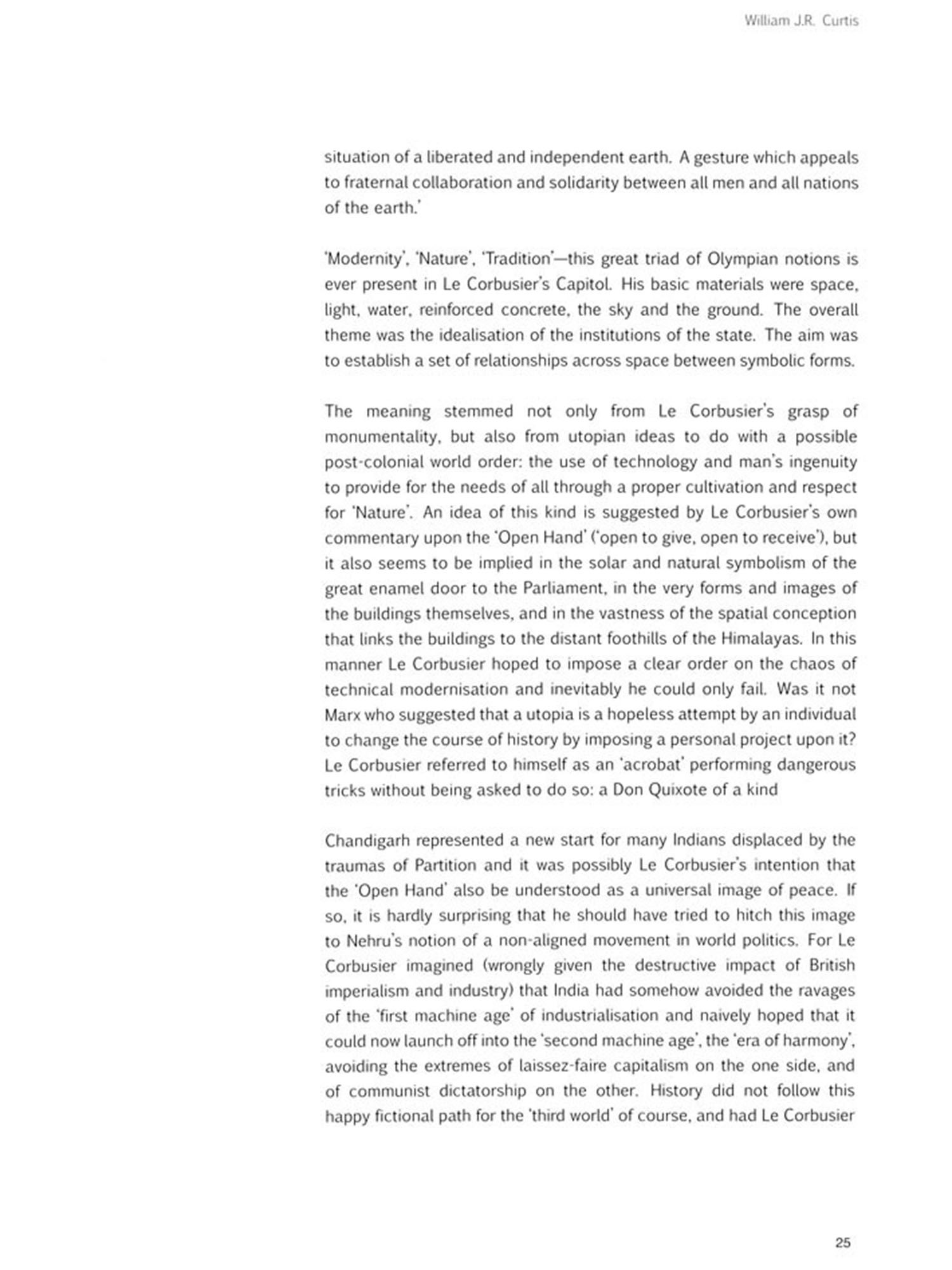 Le Corbusier opted to design the overall conceptual master plan of Chandigarh, the Capitol Complex consisting of the four important buildings in Chandigarh including the High Court, the Assembly, the Secretariat, the Governor's Palace (unbuilt) and the various monuments like the Open Hand and others to demonstrate his approaches to both planning and architecture. Perhaps, this act was very similar to our great temple builders who conceived and demonstrated the visions, thoughts and their understanding of the Indian philosophy of life and living.