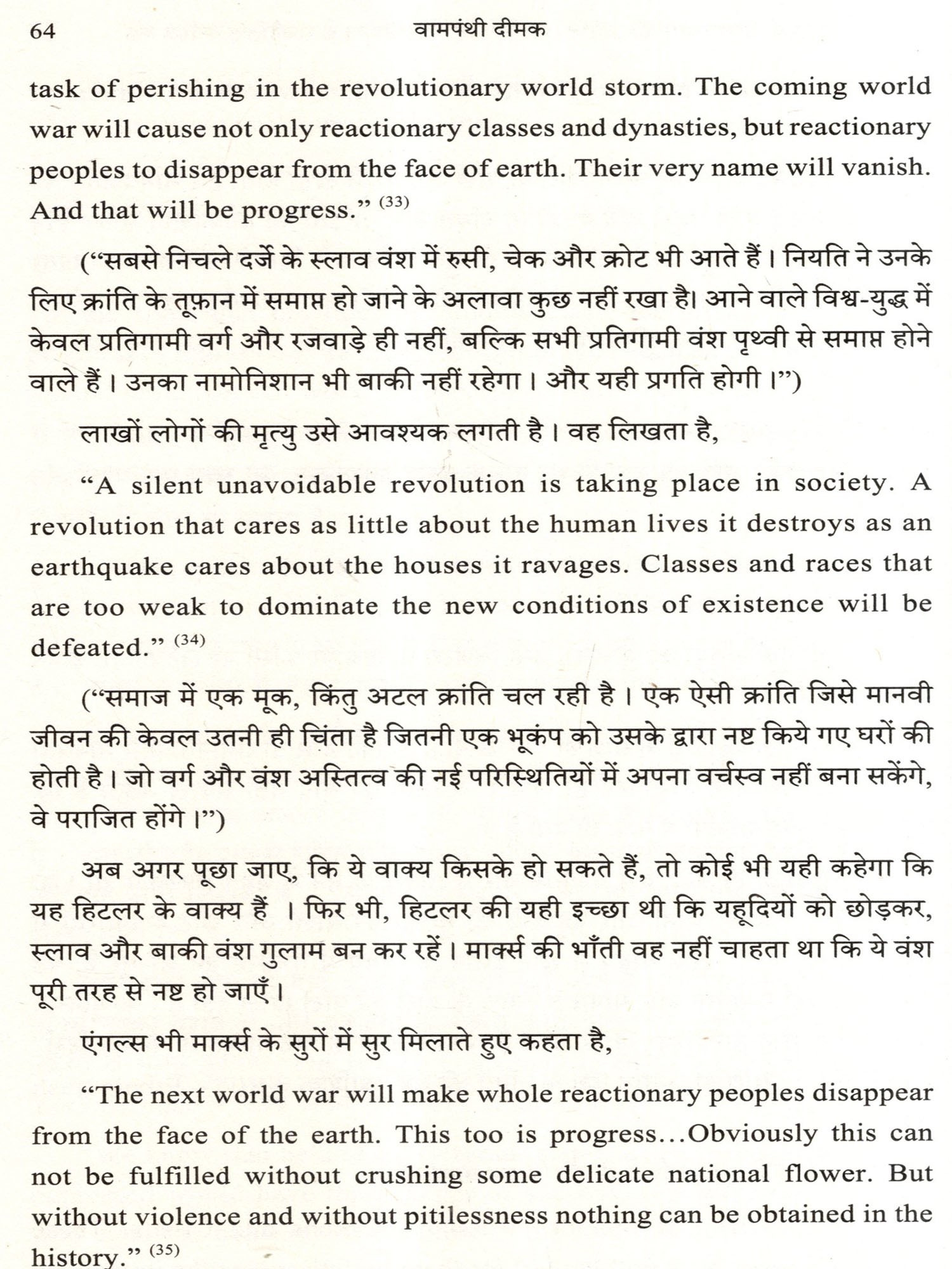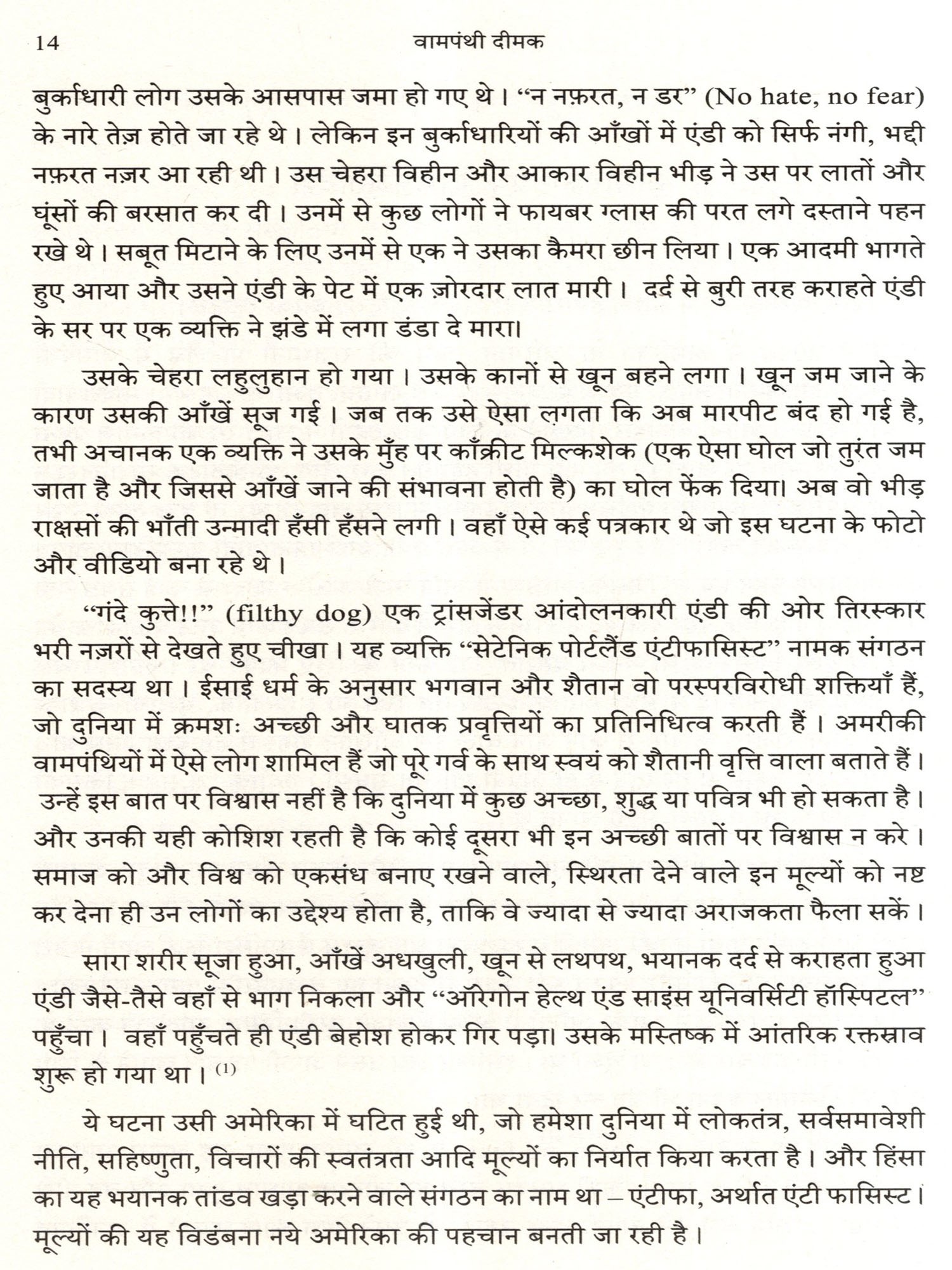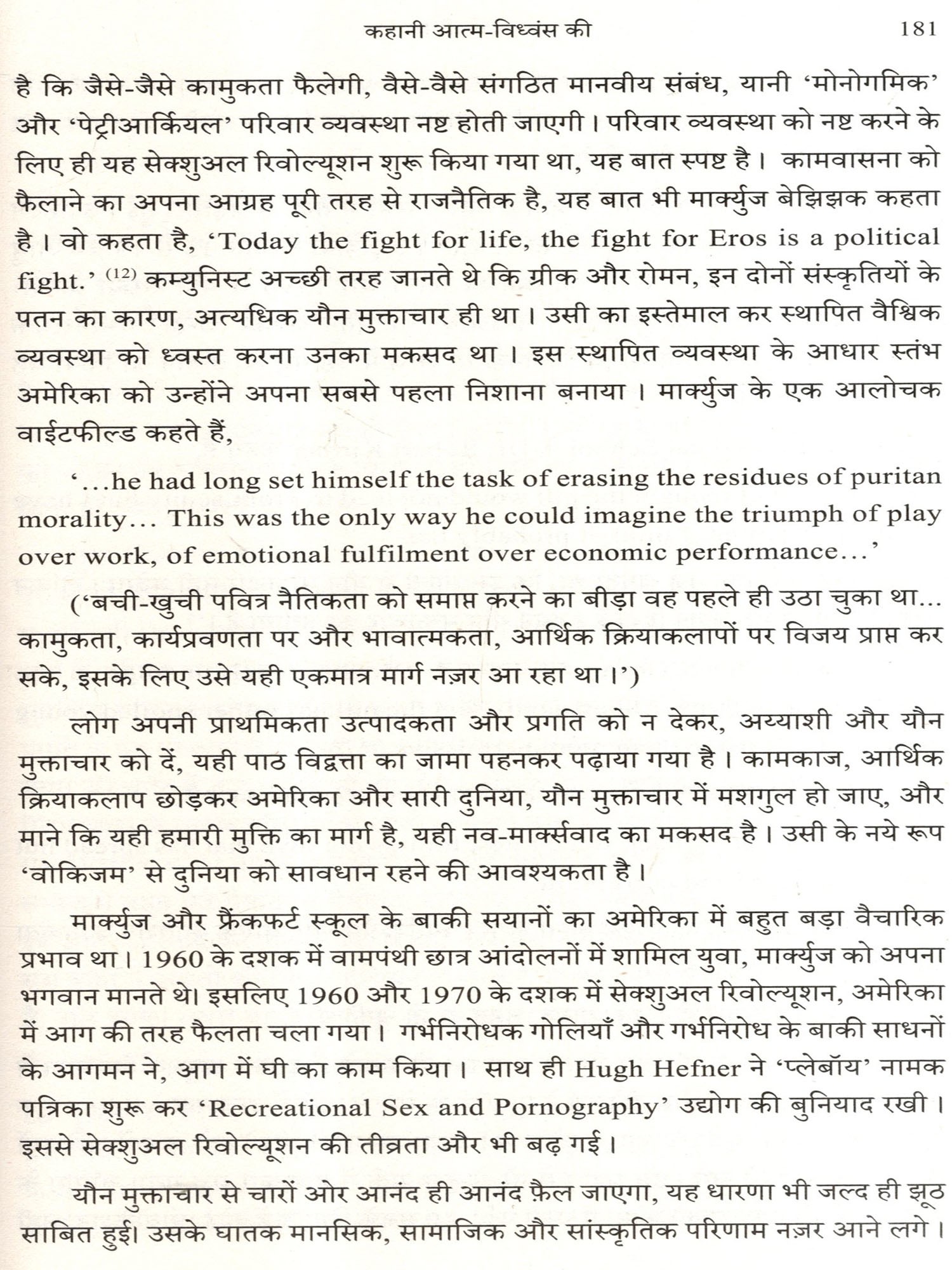 वोकिजम का मतलब है जागे हुए। लेकिन ये जागे नहीं, भूखे हैं। ये सबको निगलना चाहते हैं। अमेरिका में सत्ता परिवर्तन के बाद सबसे पहला शासकीय आदेश यही निकाला गया था कि स्कूलों में विद्यार्थियों को कोई यह नहीं बताएगा कि वे स्त्री हैं या पुरुष। इसे वे स्वयं 'तय' करेंगे। अगर किसी लड़के ने 'तय' किया कि वह लड़की है, तो उसे लड़कियों के बाथरूम में जाने की अनुमति होगी। ऐसे विचारों के कारण ही पश्चिमी सभ्यता से दुर्गंध आने लगी है। यह तूफ़ान अब भारत की ओर रुख कर चुका है। इसी का मतलब है कि उसका अंत निश्चित है। उसका अच्छी तरह से अंतिम संस्कार हमें ही करना है। ये हमें करना ही होगा। हमें स्वयं पशु नहीं होना है, और दूसरों को भी पशुत्व से बाहर निकालना है। इसकी तैयारी के लिए, यह पुस्तक वास्तव में एक 'पाठ्य पुस्तक' है। इसे स्वयं भी पढ़ें और इसका प्रचार-प्रसार भी करें।