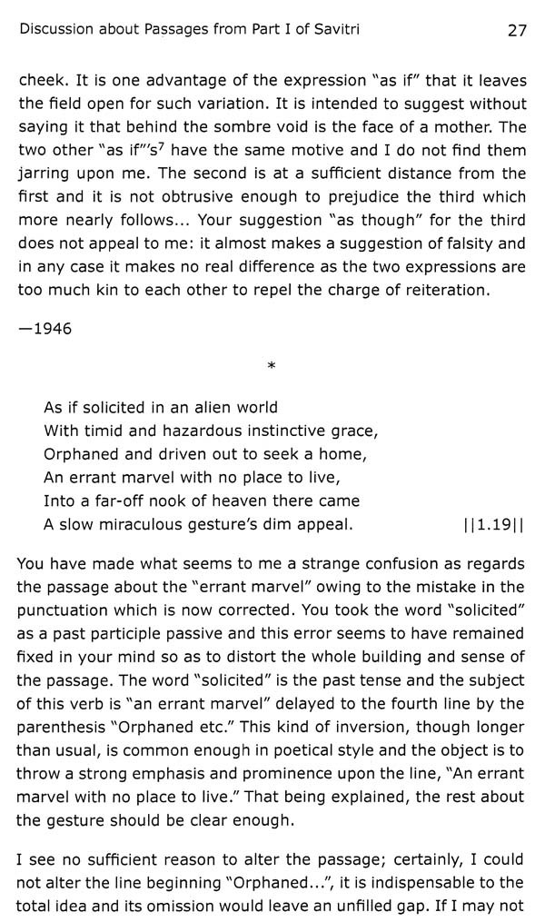 These letters are published at the end of Savitri for their rare value as a great poet's informal self-commentary. Apropos that value, a few facts of deep personal interest may be mentioned about the coming of this poem to its close.
