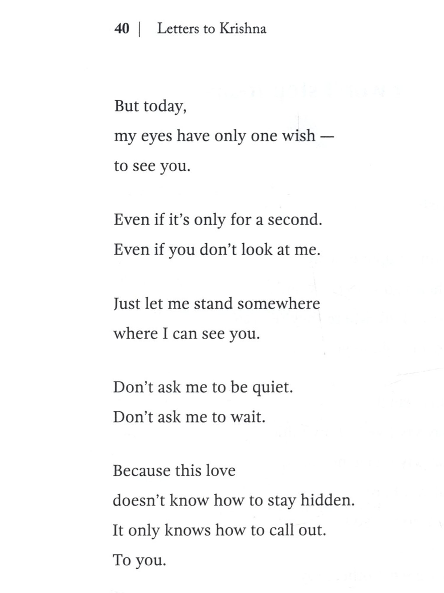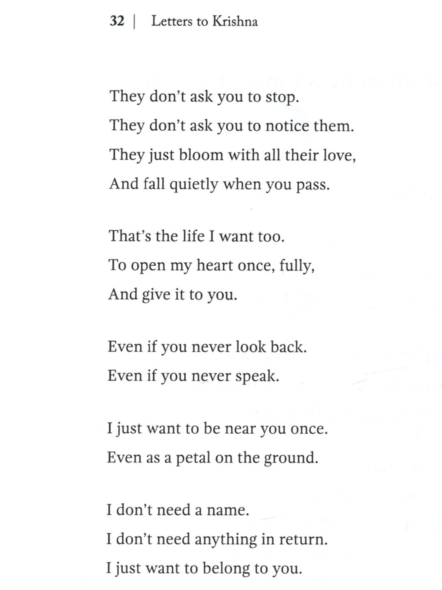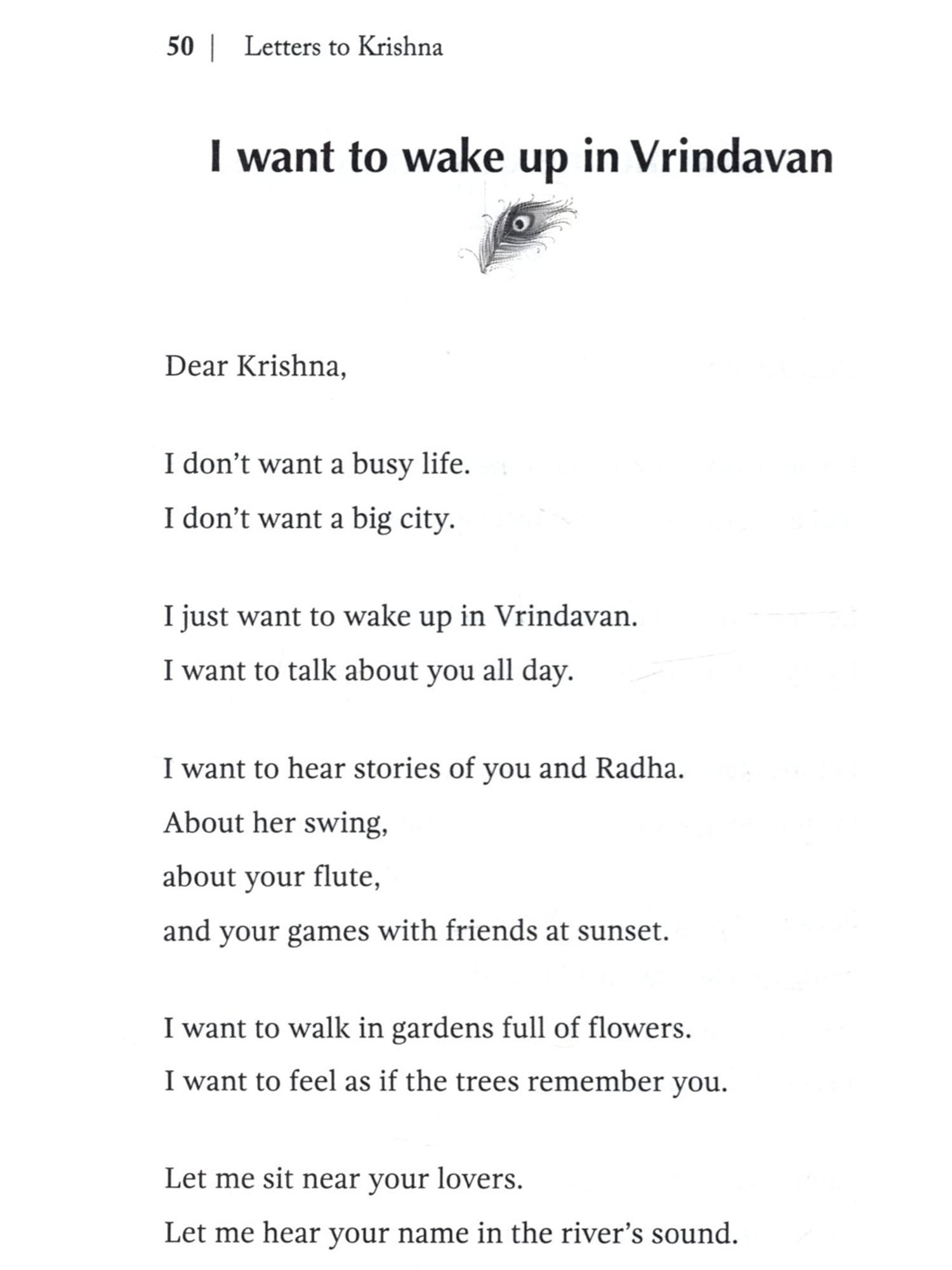 I didn't plan to write this book. There was no big goal. Just a quiet feeling inside. It didn't leave when I spoke to people. But it softened when I wrote to him. As I kept writing, I saw something. I'm not the only one who misses him. Who smiles just hearing his name. Who loves him without ever seeing him. So I kept going. Not to explain who he is. Not to say something special. Just to remember him. You won't find big words here. No heavy ideas. Just small feelings. Held together with love. These letters are not perfect. But love isn't perfect either. It falls. It waits. It doubts. And still, it keeps coming back. If you've ever loved Krishna in any way, with even a small part of your heart, I hope these pages feel like home. This is not just my book. It's yours too. It's for every heart that wants to speak. To the One who already understands.