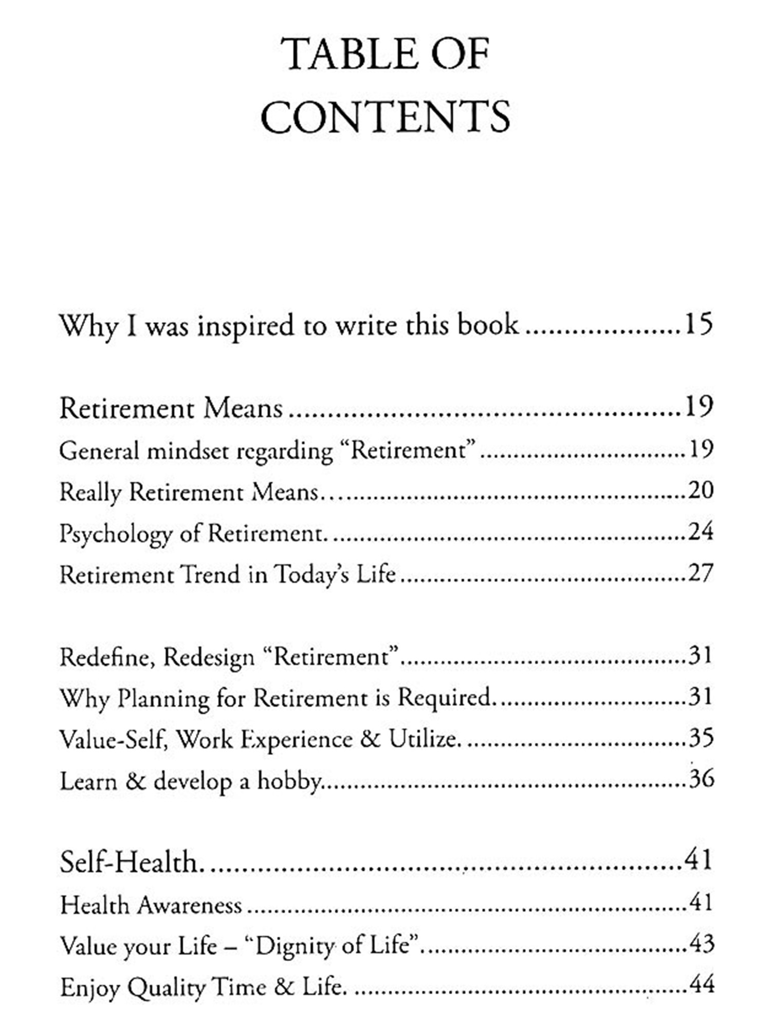 His maximum age group of patients is between 50 to 65, which is close to retirement. So, he thought of working on retired age group people/senior citizens. He started studying, observing them minutely, then he found the challenges/difficulties faced by this age group of people viz. physical, mental, emotional & financial. So, this study made him think about the cause, and how he can help/ guide them. So, these experiences made him pen down this book to help senior citizens, who are retired & also who are close to retirement. They can also get a few tips to plan their retirement. Who have already retired can also redefine, redesign & rethink their retirement. I hope everyone will benefit & enjoy this book.