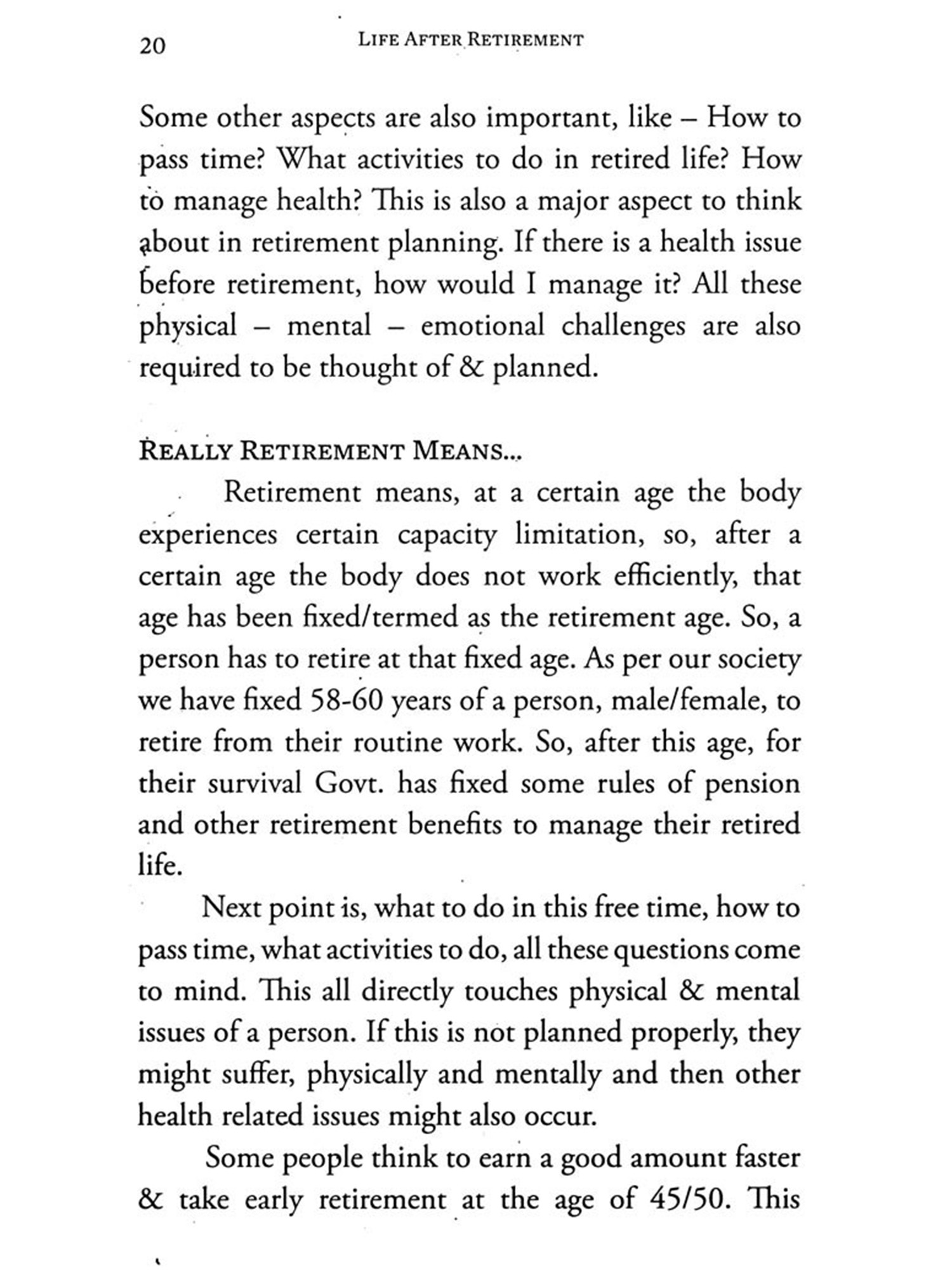 What does the word "Retirement" mean in everyone's mind? Most people think that "Retirement" means financial planning & enjoying life without stress, tension. Is it that easy? Does only Financial Planning work & make life easy during Retirement?