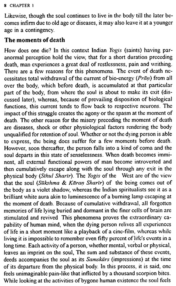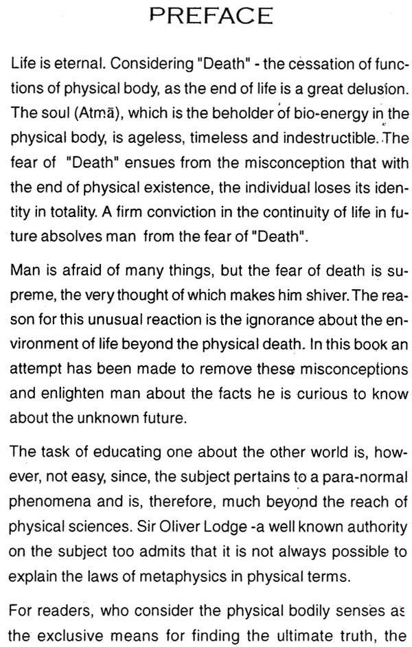 Man is afraid of many things, but the fear of death is supreme, the very thought of which makes him shiver. The rea-son for this unusual reaction is the ignorance about the environment of life beyond the physical death. In this book an attempt has been made to remove these misconceptions and enlighten man about the facts he is curious to know about the unknown future.