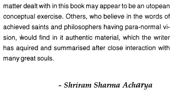 For readers, who consider the physical bodily senses as the exclusive means for finding the ultimate truth, the matter dealt with in this book may appear to be an utopean conceptual exercise. Others, who believe in the words of achieved saints and philosophers having pars-normal vision, would find in it authentic material, which the writer has squired and summarised after close interaction with many great souls.