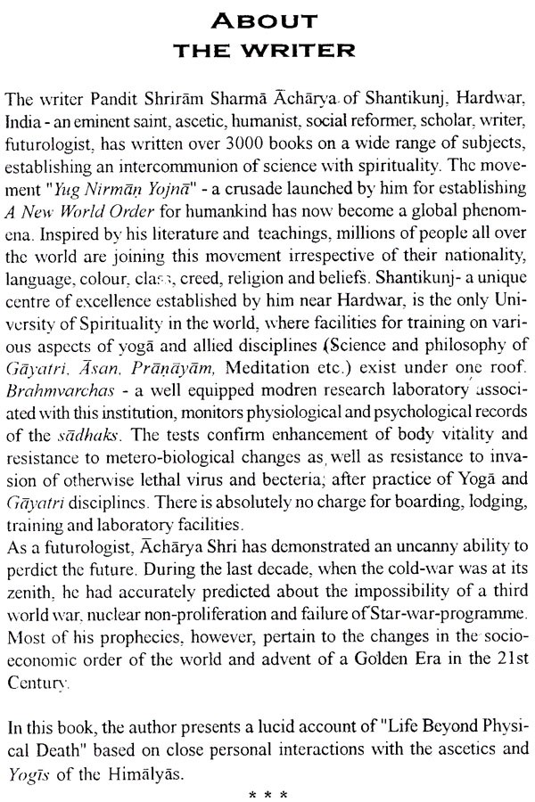 In this book, the author presents a lucid account of "Life Beyond Physical Death" based on close personal interactions with the ascetics and Yogis of the Himalayas.