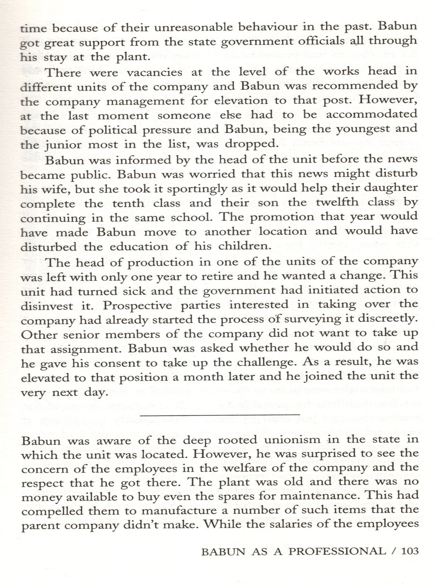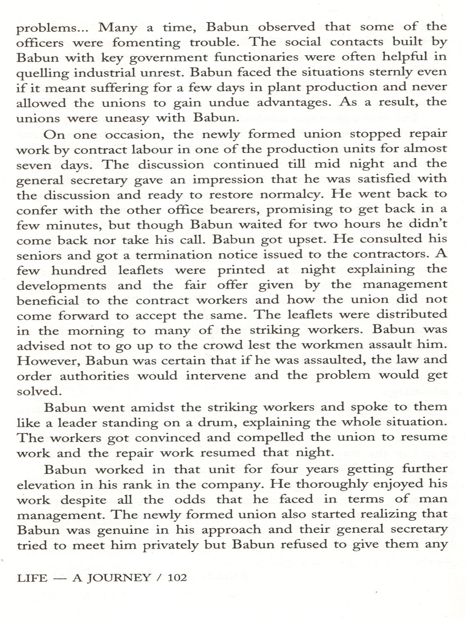 His wise, intelligent, and God-fearing mother, though illiterate always encouraged Babun in his pursuit of excellence. This enabled Babun to become more confident of himself, excel in academics and grow up to undertake management of large industrial set ups. Parallel to this, Babun studied science as well as the Scriptures to understand the purpose of creation and the true nature of the Creator.