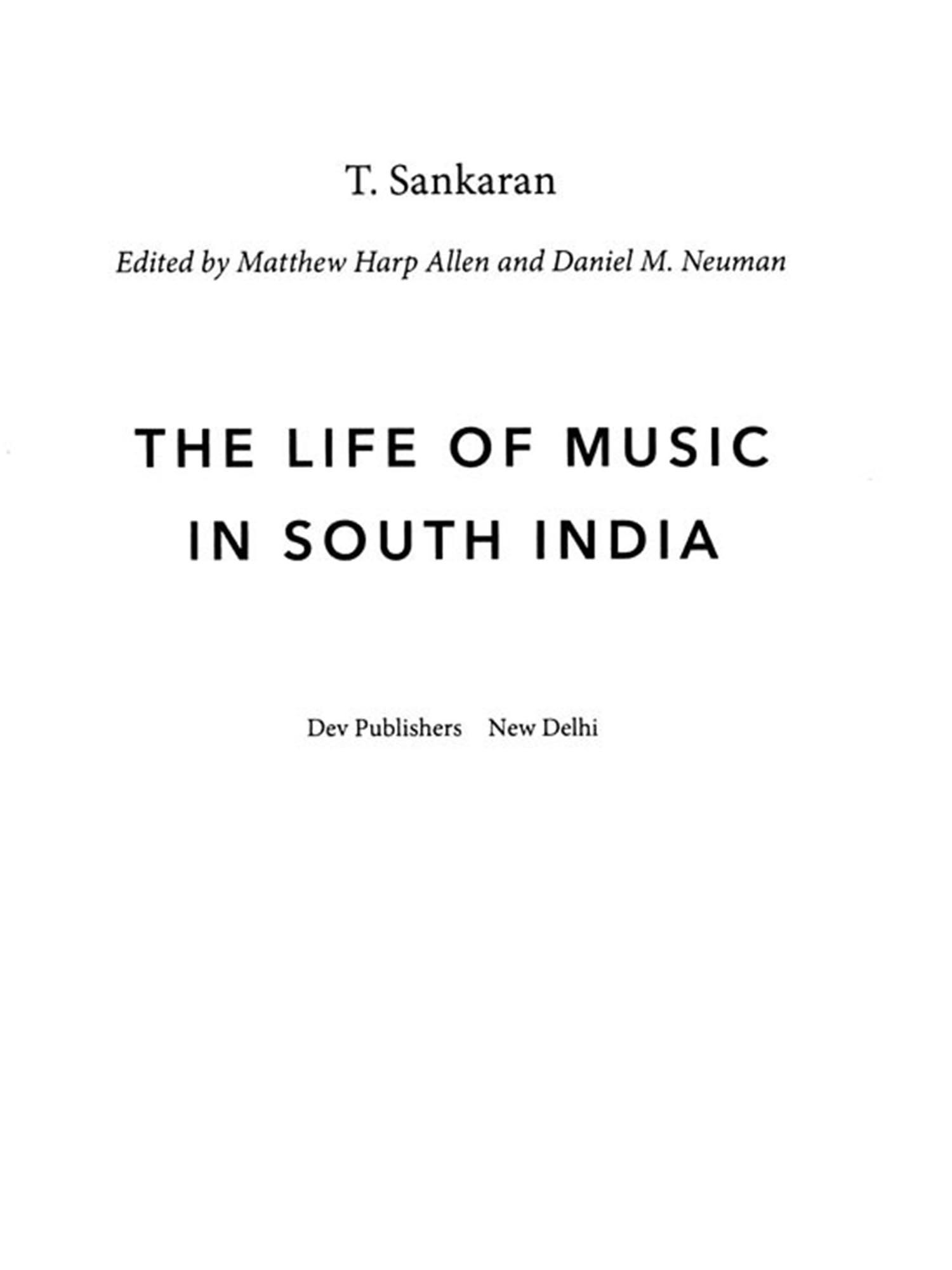 T. SANKARAN (1906-2001) was a scholar, vocalist, and an officer at All India Radio and later a director of Tamil Isai Sangam (Tamil Music Academy) in Madras. In later years he wrote for Sruti magazine of Indian music and dance, The Indian Express, The Hindu, and other Madras and national newspapers. MATTHEW HARP ALLEN is professor of music, emeritus, at Wheaton College and co-author with T. Viswanathan of Masic in South India: The Karnatak Concert Tradition and Beyond. He has written several articles and book chapters on the social history of South Indian dance and the classicization of Carnatic music. DANIEL M. NEUMAN is emeritus professor and executive vice chancel-lor and provost at the University of California, Los Angeles, and has published numerous articles and several books, including The Life of Music in North India.