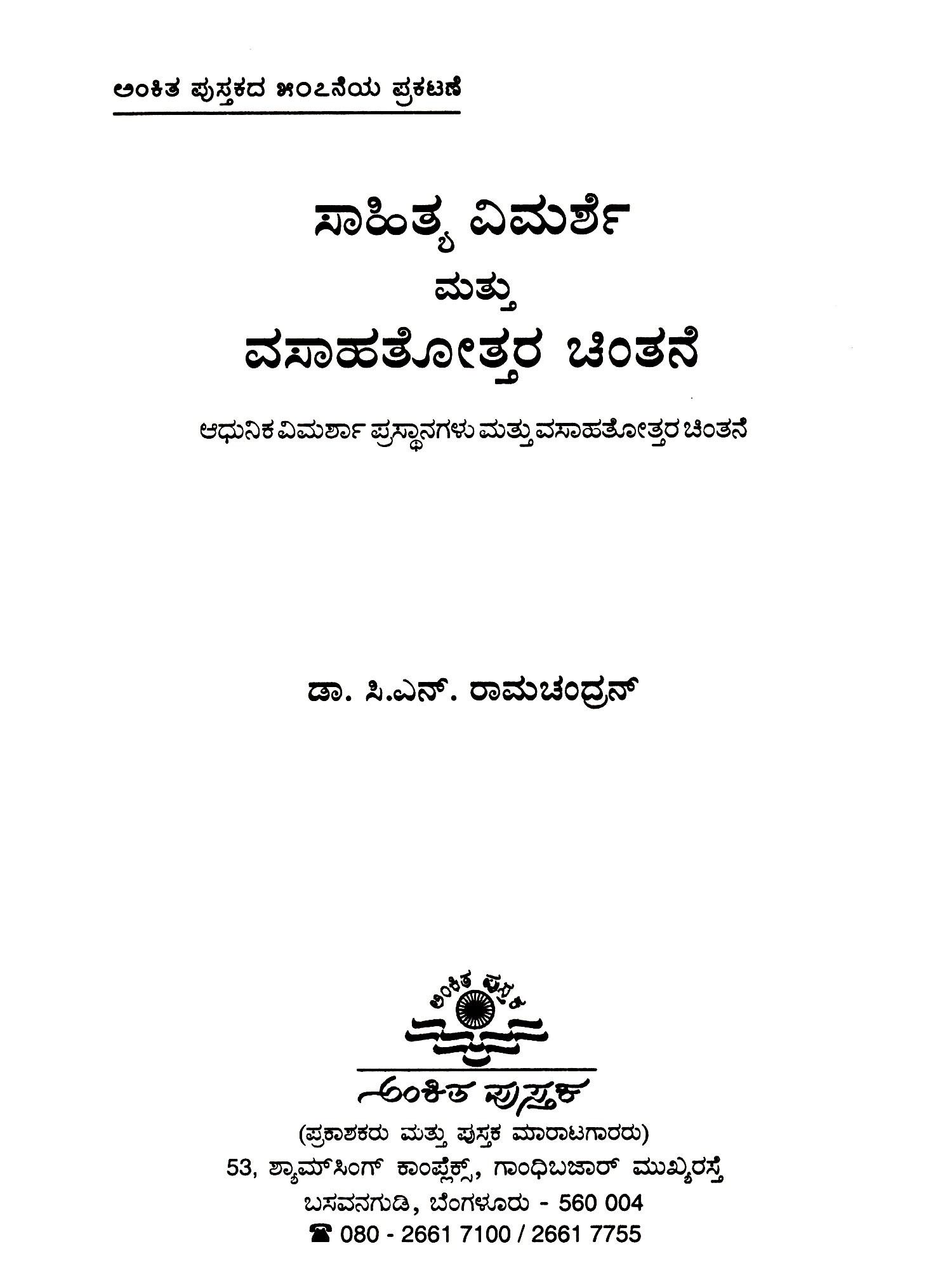 ವಿಸ್ಮತಿಯ ತಿಯ ನಂತರ- Vismruthiya Nantara: A Treatise on Indian Literary Criticism (Kannada)
