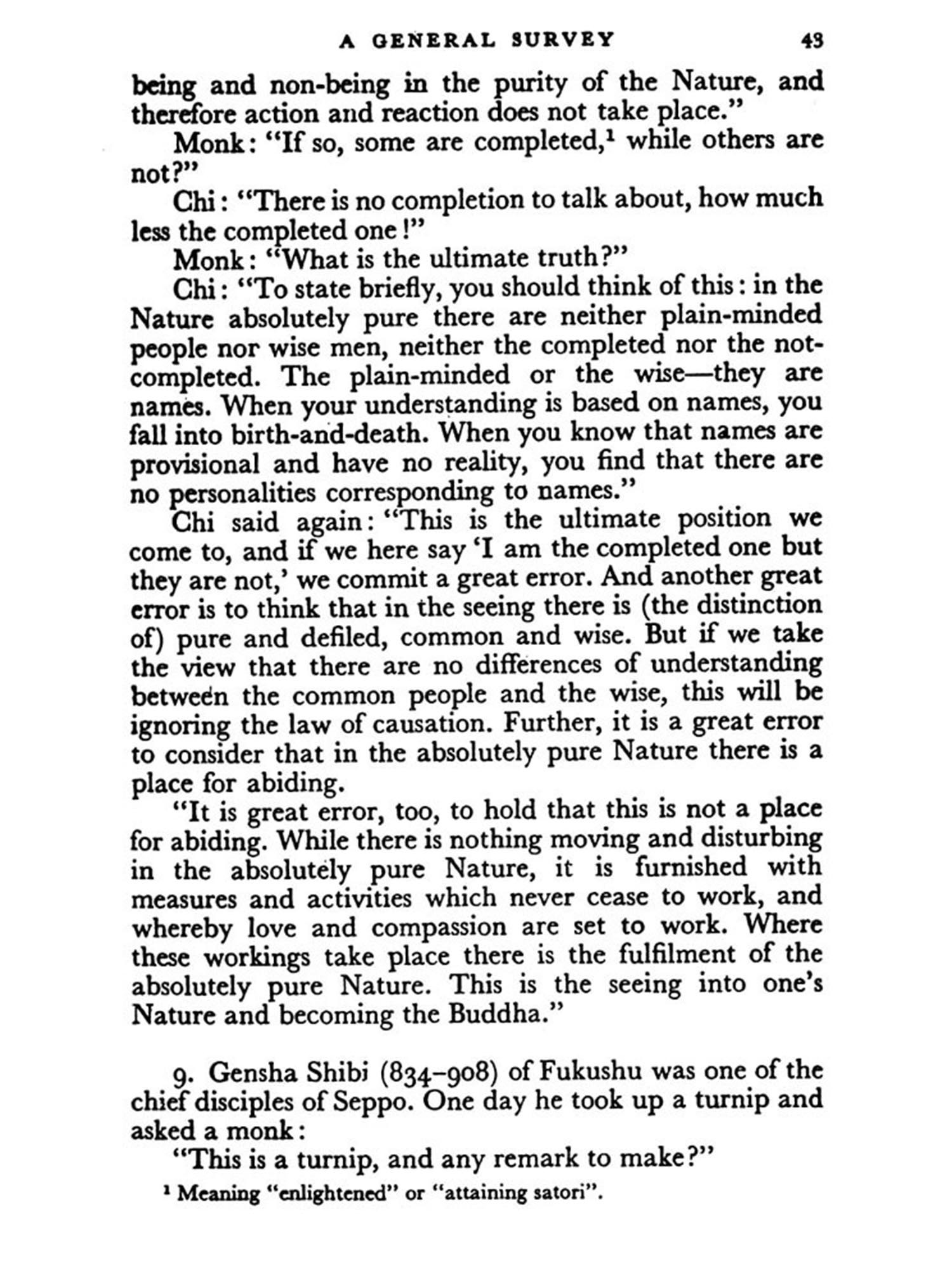 SINCE the end of the war the author has met several young American and English inquirers about the teaching of Zen, whose approach was more or less in the modern scientific spirit. This made him go over anew the ground which he had been accustomed to cover in a somewhat old-fashioned way. Moreover, he has reconsidered to some extent his understanding of Zen in accordance with later experience and reflection. The present book is a partial result of this reconsideration, while he hopes in his future works, if he is allowed to live a few years longer, to give a fuller exposition of Zen.
