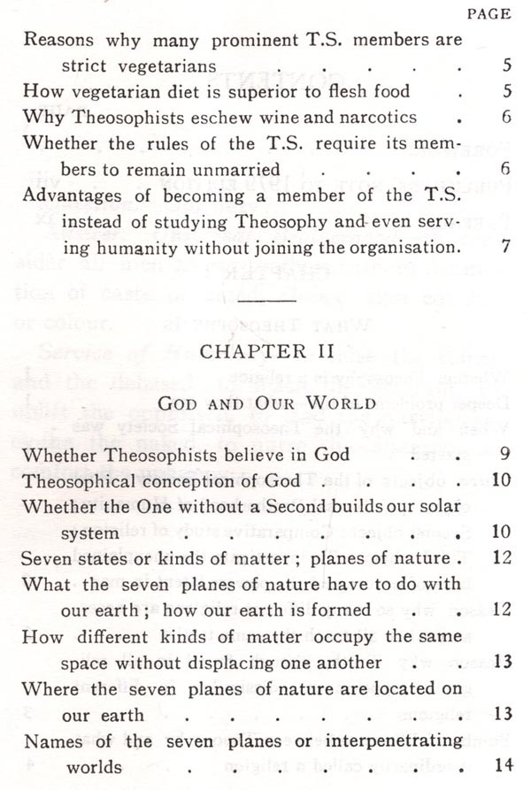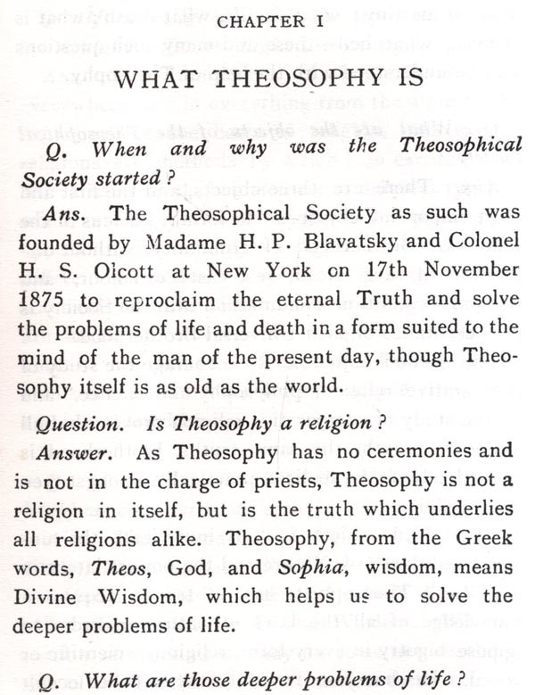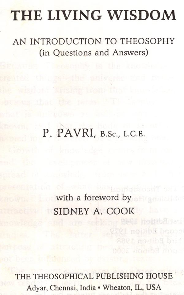 The present volume by Mr. Pavri will draw new readers to learn of Theosophy, but because he is an old and sincere student, older members too, will find interest in his presentation. His book will be found suitable for all who desire understanding of the wisdom-teaching, and especially is it adapted, through its question-and-answer form, to the use of teachers and for class work. The completeness of the Contents pages contributes substantially to this usefulness.