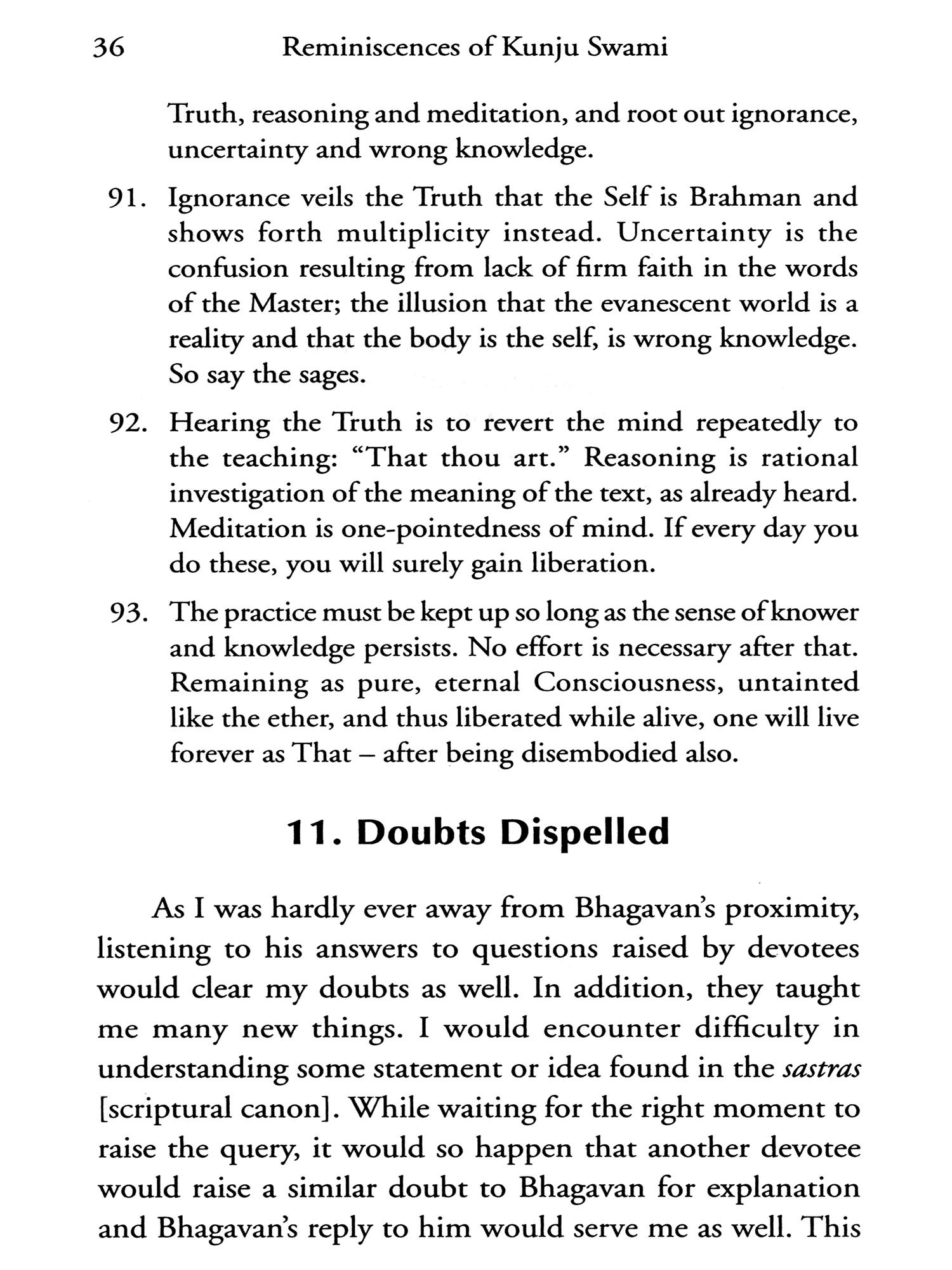 Enadau Ninaivugal, Sri KUnjuswami’s reminiscences of his Master written in Tamil, is a treasure-trove of spiritual wisdom. Now it is available for the first time in English, thanks to the spontaneous and willing services of Dr. K. Subrahmanian, who not only rendered it into simple and lucid English but also helped the Ashram to have it printed in Hyderabad, with all care and attention. The English-knowing public will be grateful to Dr. Subrahamanian for this act of service. Special thanks are also due to Sri A. V. Ramanaiah, Sri Ramdas Murthy and Sri Hari Rao of Sri Ramana Kemdra, Hyderabad, for all their help in getting the book printed. The devotees, I am sure, will be happy to have the translaton of Sri Kuinjuswami’s Reminiscences in book-form.