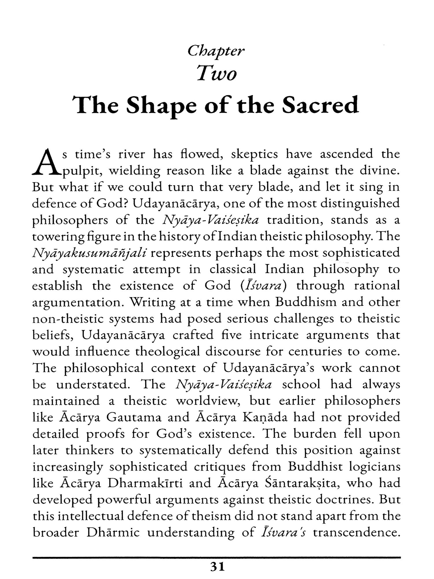 In this volume, Mrittunjoy deftly shows us that the work of ancient Indian logicians-in particular, Udayanacarya-is deeply relevant to a question that refuses to go away, despite the efforts of a wide range of skeptics to refute it: the question of theism. As Dr. Guha Majumdar rightly says, the Nyaya system of philosophy which Udayana represents is too often characterized as a dry set of syllogisms. But as presented here, we see Udayana as pushing the boundaries of what it is possible for reason to accomplish. The discussion of Udayana and his response to Indian anti-theists (mostly Buddhists and Jains) is deftly woven into a conversation about Western philosophy and the current state of the theistic conversation. Even quantum physics is shown to fit within this conversation.