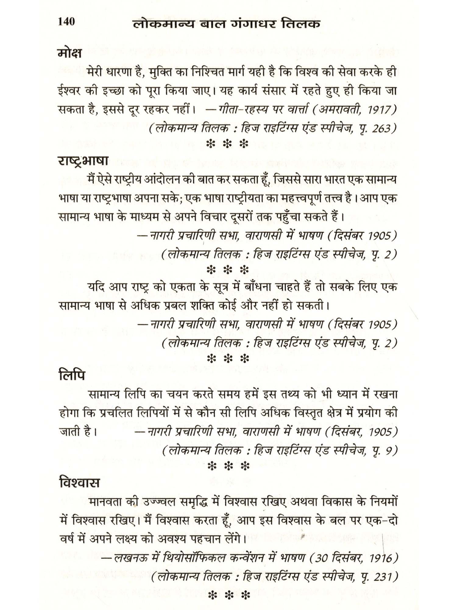 देश की स्वतंत्रता के लिए प्रयत्नशील तिलक के उ‌द्बोधन प्रायः इसी शैली में होते थे, जो श्रोताओं की आत्मा की गहराइयों तक उतरते चले जाते थे। उन्होंने अपने राजनीतिक जीवन में जो मंत्र दिया, वह हमेशा-हमेशा के लिए एक उज्ज्वल नक्षत्र बन गया। "स्वराज्य मेरा जन्मसिद्ध अधिकार है और मैं इसे लेकर रहूँगा।" जब इस सिंह-गर्जना से देश का कोना-कोना गूंज उठा तो समाज के सभी वर्गों ने स्वराज्य-प्राप्ति के स्वप्न को स्वयं से जोड़ने की प्रेरणा ली, मानो यह सबकी सम्मिलित आकांक्षा बन गई थी। लोकमान्य तिलक के राजनीतिक विचार तत्कालीन परिस्थितियों की उपज नहीं थे, वरन् उन्हें ठोस व प्रामाणिक आधार प्राप्त थे। निस्संदेह निर्भीकता, अटलता व हठधर्मिता उनके स्वभाव के विशेष अंग थे; किंतु उन्होंने कभी भी इन सिद्धांतों व मान्यताओं के कारण जनता पर आँच नहीं आने दी। उन्होंने सदा अपने कार्यक्रम कानून के दायरे में रहकर ही संपादित किए; क्योंकि वे जानते थे कि वैधानिक दायरे में ही जन-शक्ति का संगठन हितकर होगा।