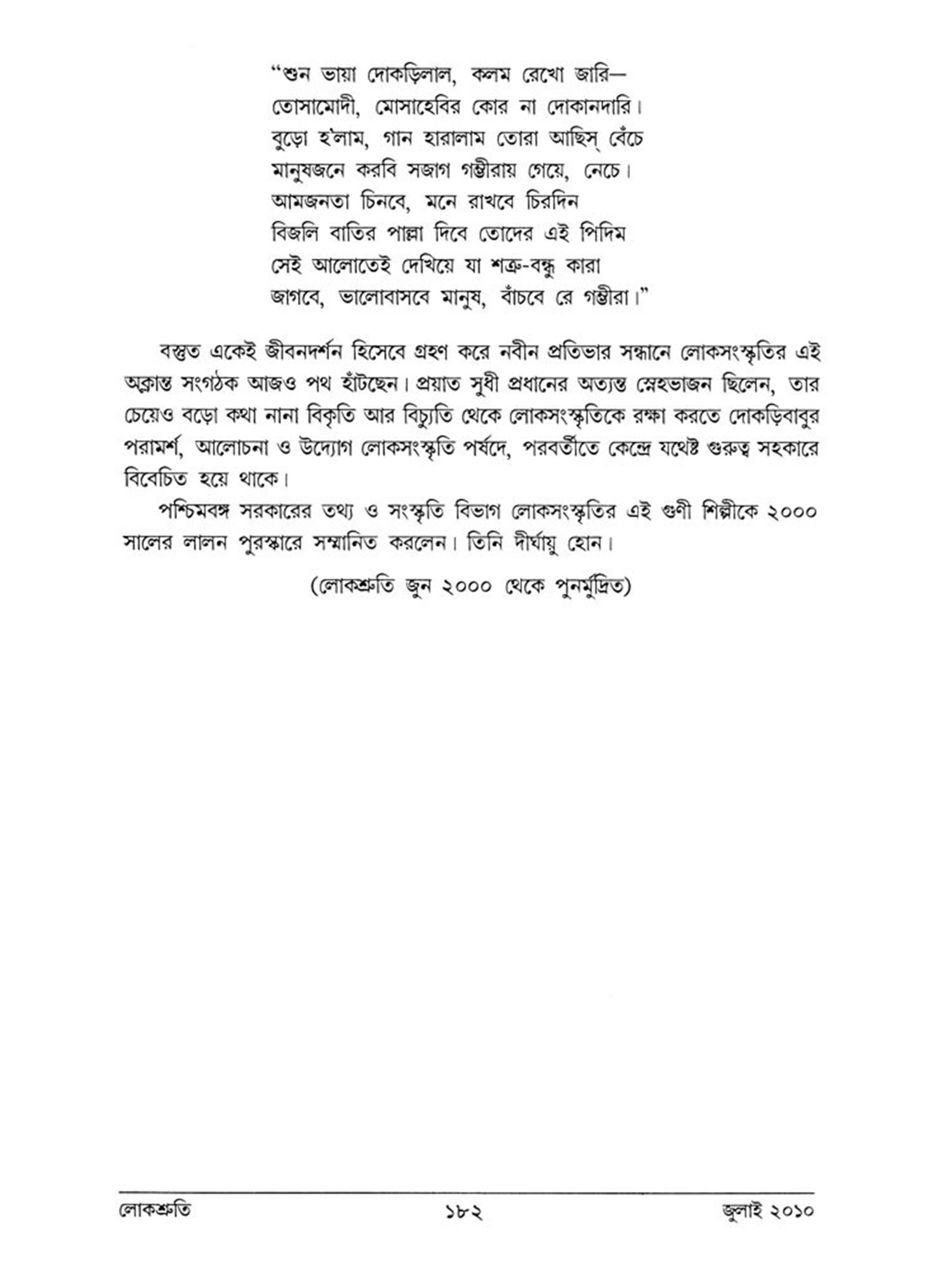 লোকশ্রীত: Lokoshruti- Folk and Tribal Cultural Centre (Vol-7 and Issue-2, June 2009) (Bengali)